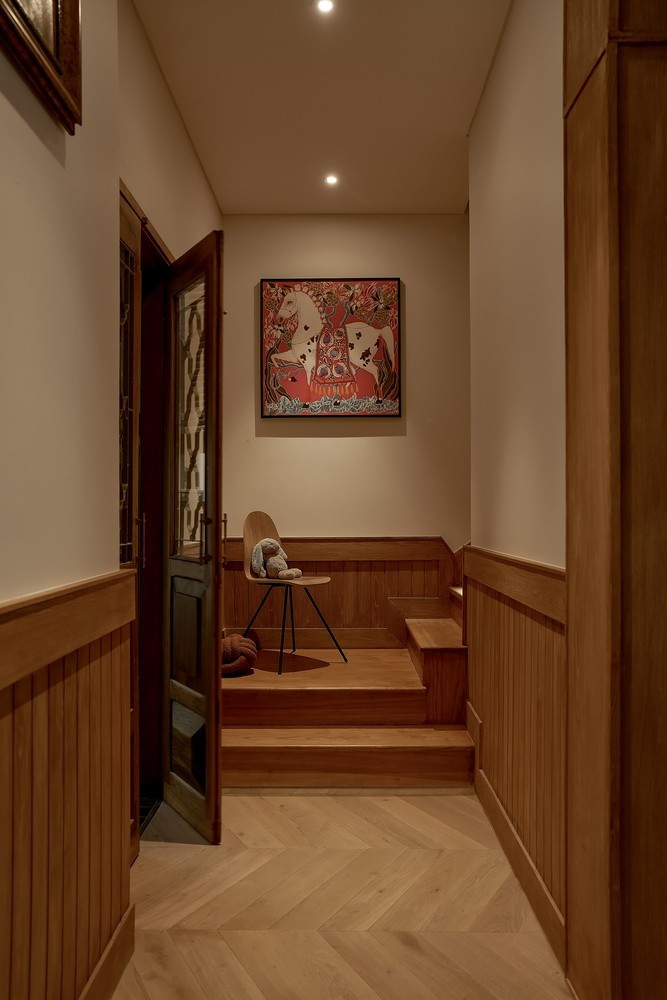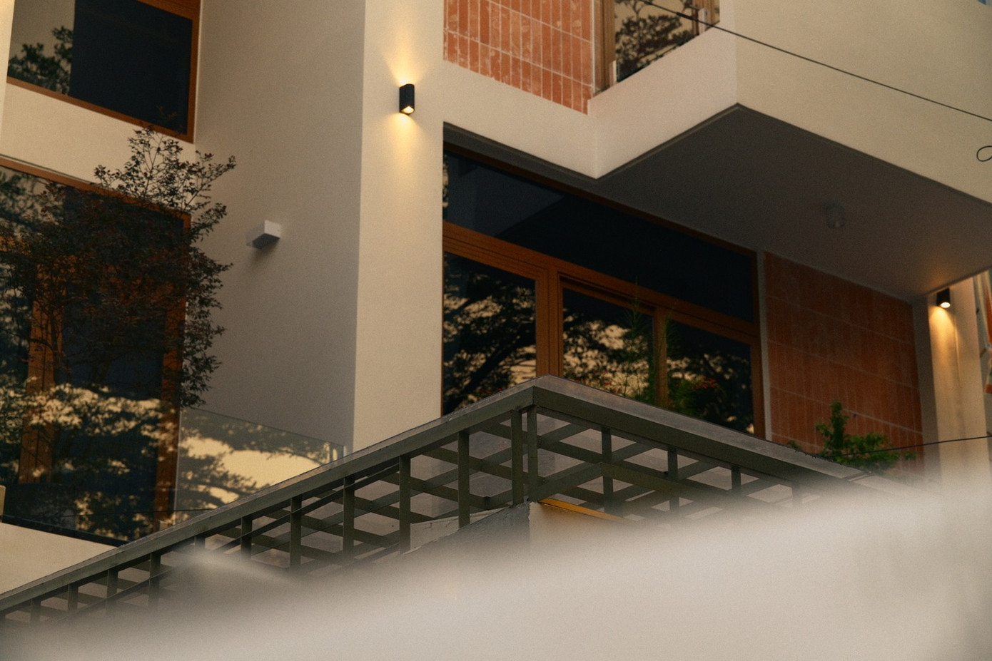 Cầu thang bộ lúc này không chỉ là trục giao thông đứng, mà đóng vai trò như một “khoảng đệm chuyển đổi tâm lý”, dẫn dắt người ở từ sự huyên náo bên dưới sang sự thư thái, nghỉ ngơi bên trên.