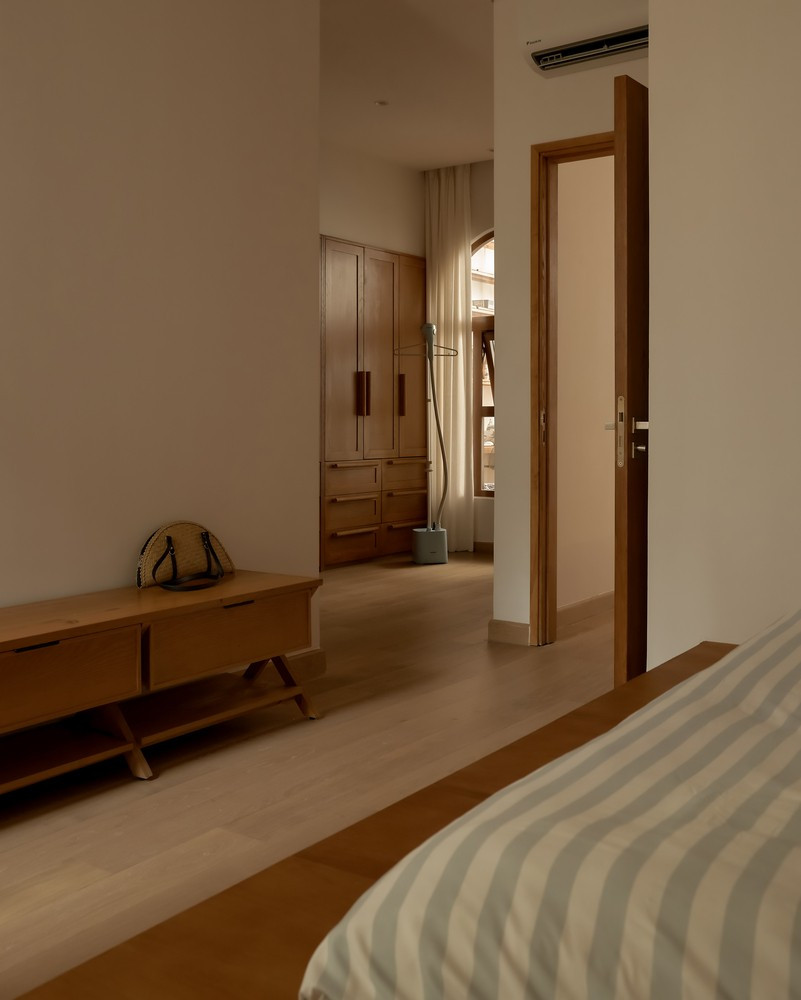 Tầng lầu - nhịp sống ban đêm: Là không gian của sự riêng tư và tĩnh tại. Các chức năng như vệ sinh cá nhân, phòng ngủ, góc làm việc hay khu vực tập nhạc được quy về một mặt sàn. Cách bố trí này tạo nên một quy trình sinh hoạt khép kín, gọn gàng và liền mạch khi màn đêm buông xuống.