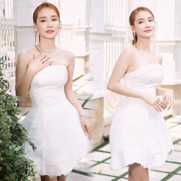 Loạt ảnh Nhã Phương diện váy cúp ngực khiến công chúng "đứng ngồi không yên", bởi nhan sắc và vóc dáng của cô. Nữ diễn viên lựa chọn những thiết kế tôn vòng một gợi cảm nhưng vẫn giữ được vẻ thanh lịch, mềm mại đặc trưng.