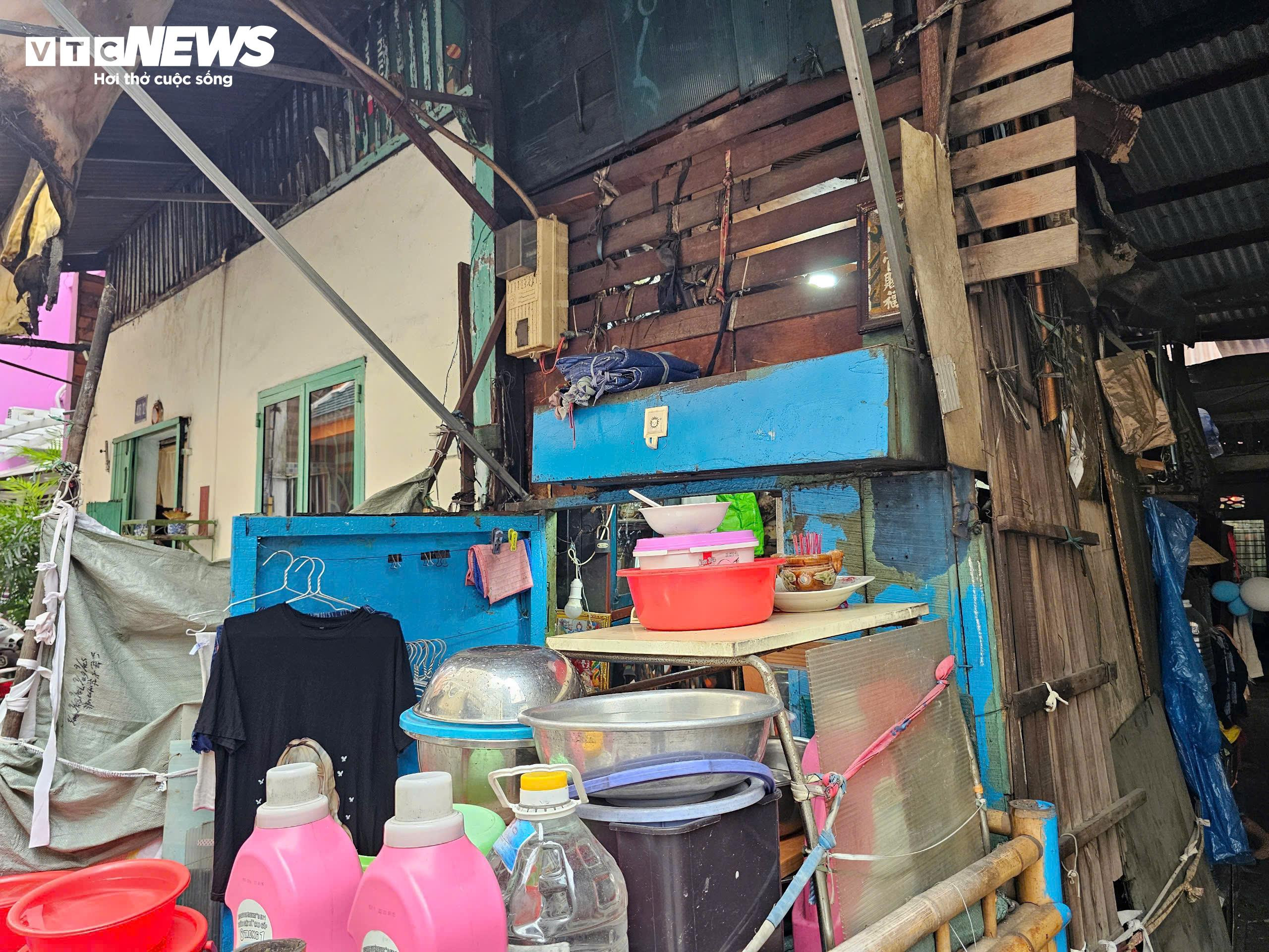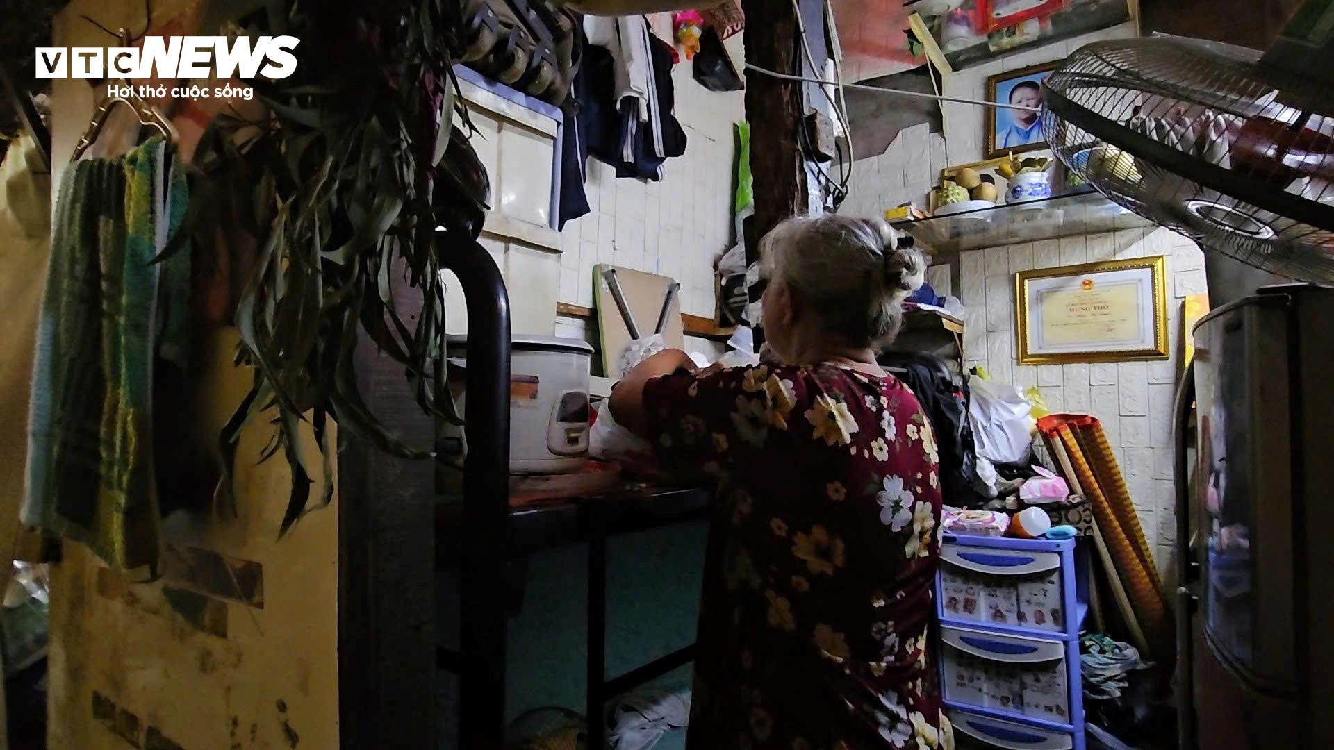 Nhà của bà Kha Tú Ngọc (70 tuổi, phường Bàn Cờ, TP.HCM) đã sinh sống ở đây từ năm 1989 có diện tích khoảng 4m², vừa đủ để đặt vài vật dụng cơ bản. Không gian nhỏ đến mức khó xoay người, bước chân bất cứ hướng nào cũng dễ vướng vào bàn, tủ hoặc các vật dụng chất chồng.