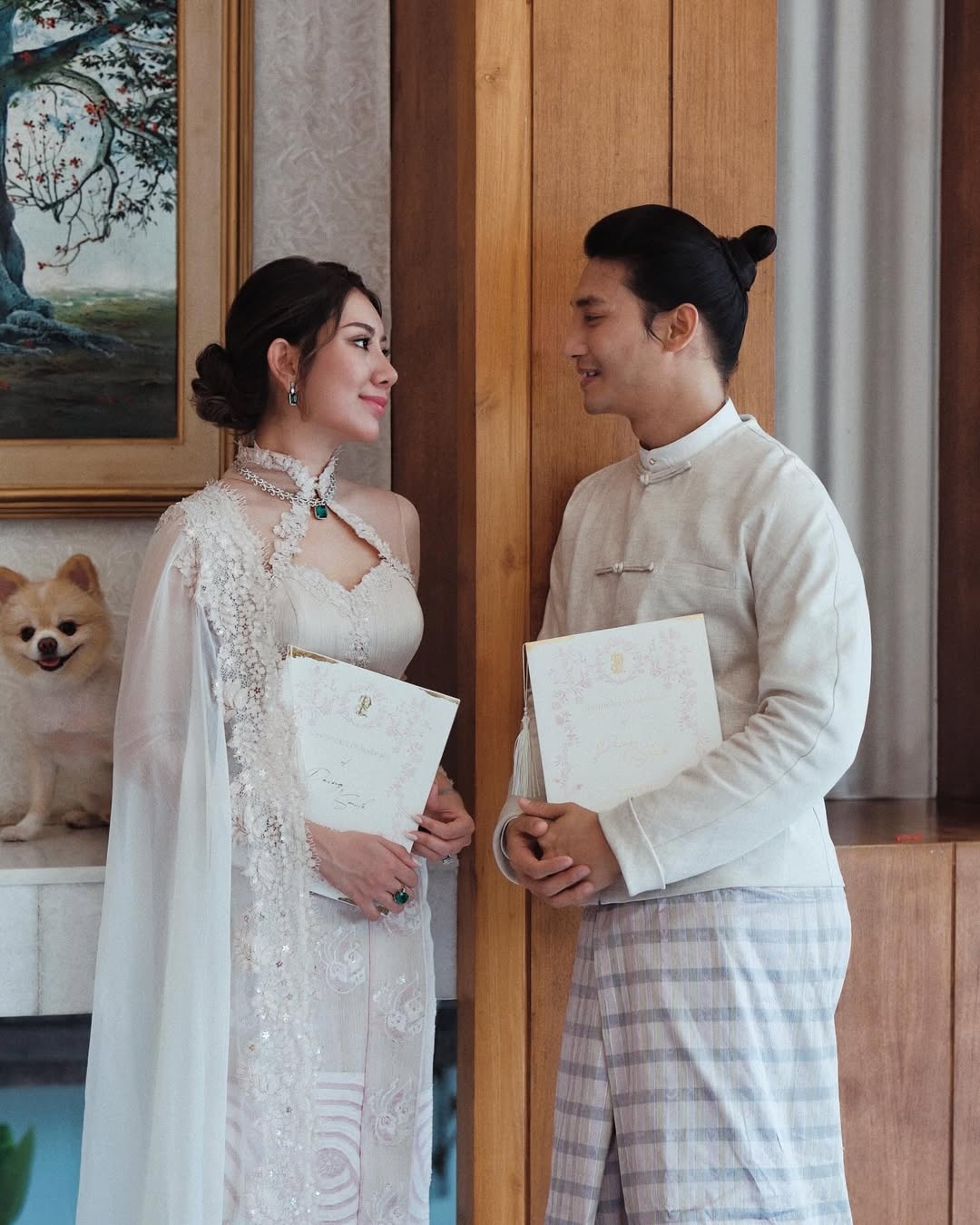 Hôn lễ của cặp đôi được tổ chức theo phong cách truyền thống Myanmar và cả hiện đại. "Bốn năm trước, anh từng hứa sẽ cưới em khi anh bước sang tuổi 28. Giờ ngày đó đã tới, anh đã sẵn sàng để dành cả đời này chăm sóc em", Takhon từng khiến nhiều người xúc động với lời bày tỏ dành cho bà xã.