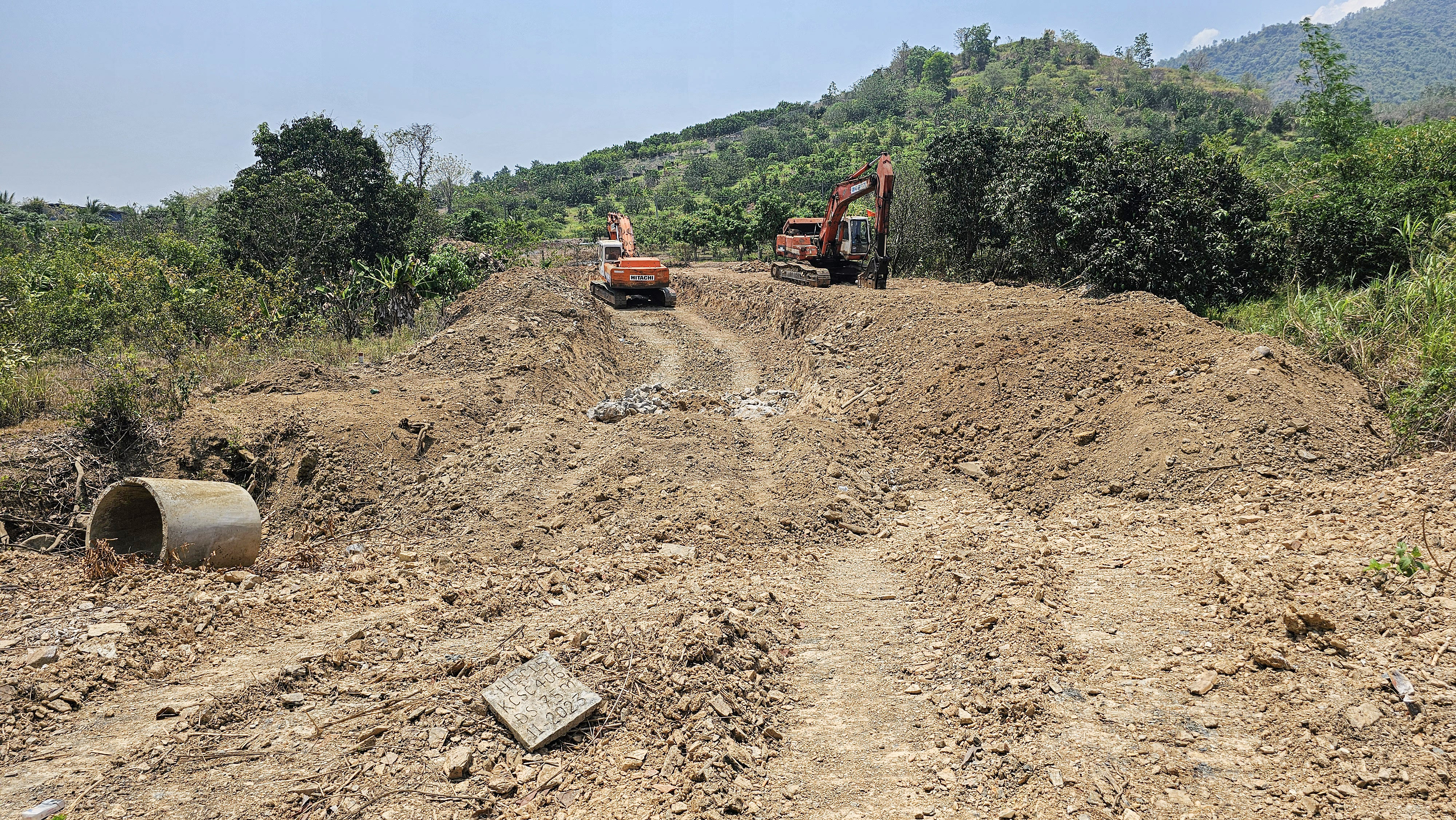 Khoảng đầu tháng 3-2026, dù đã tập hợp máy móc đầy đủ nhưng không thể thi công vì không có mặt bằng.