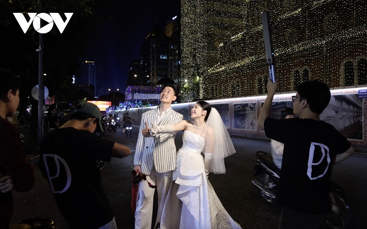 Nhà thờ Đức Bà lung linh bởi hàng triệu ánh đèn LED, không chỉ là nơi để du khách chiêm ngưỡng hay giới trẻ “sống ảo”, mà còn trở thành bối cảnh cho những khoảnh khắc đời người quan trọng.