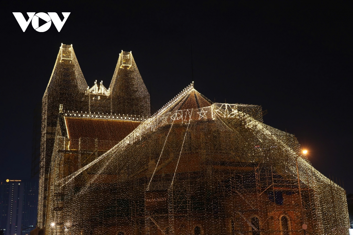 Dịp Giáng sinh năm nay, Nhà thờ Đức Bà được trang trí với số lượng đèn LED nhiều gấp đôi năm 2024 nhằm hưởng ứng Năm Thánh của Giáo hội hoàn vũ.