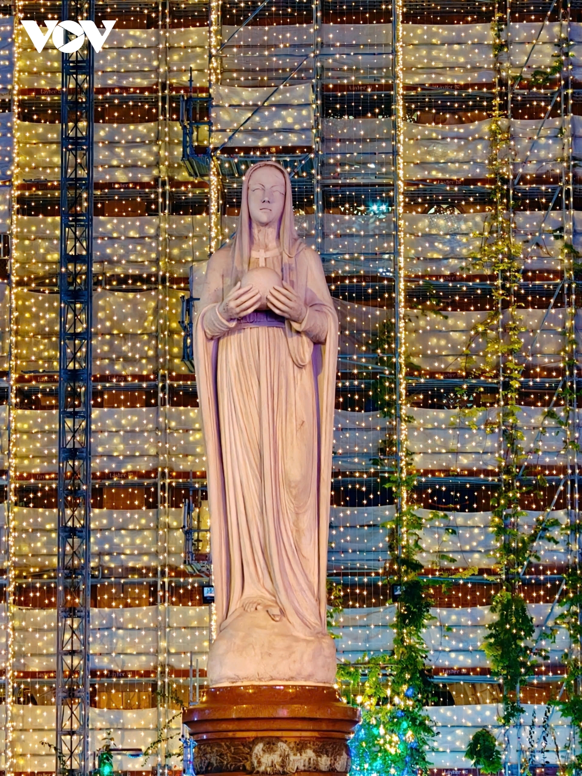 Linh mục Inhaxiô Hồ Văn Xuân, Trưởng ban trùng tu nhà thờ, cho biết số lượng đèn được tăng gấp đôi năm 2024 nhằm hưởng ứng Năm Thánh của Giáo hội hoàn vũ.