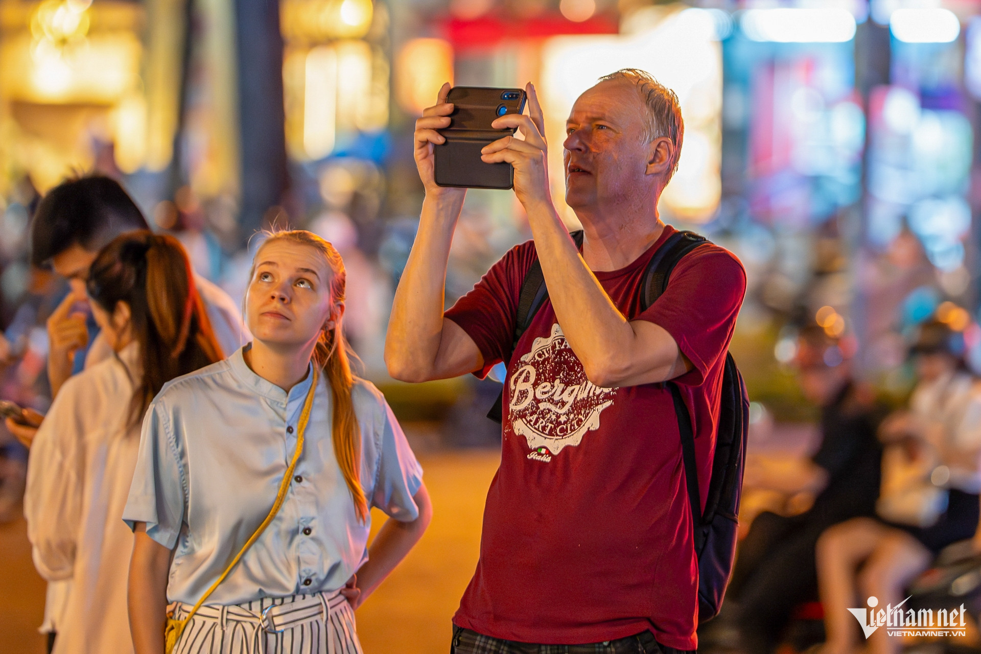Du khách nước ngoài lưu trú gần đó cũng dừng chân khi thấy nhà thờ rực sáng. Một người chia sẻ, muốn lưu giữ những khoảnh khắc đặc biệt trong kỳ nghỉ tại Việt Nam.