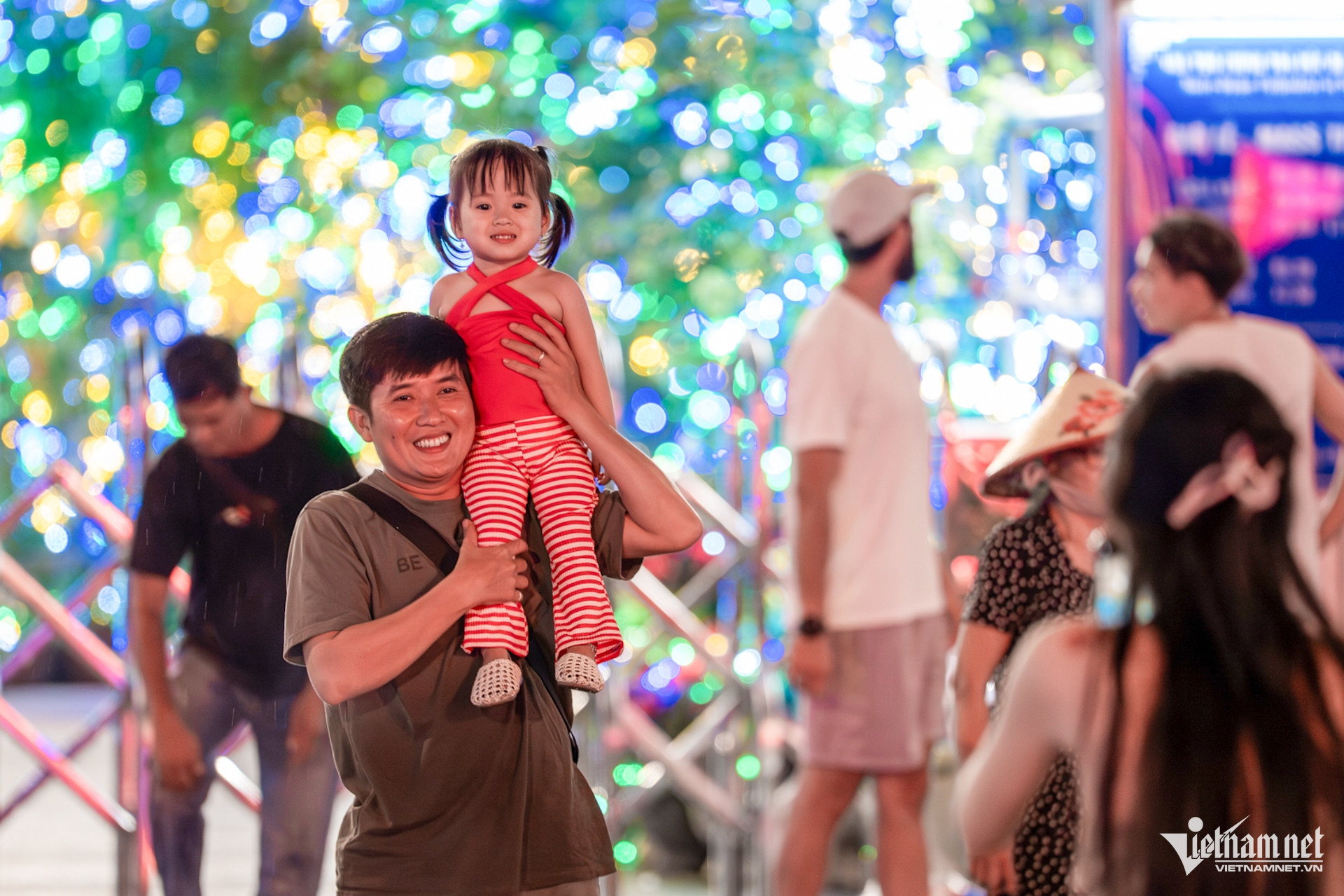 Gia đình anh Phạm Tấn Phát (phường Bình Trị Đông) cũng tranh thủ ghi lại khoảnh khắc cuối năm bên con nhỏ. Anh cho biết, khi thấy hình ảnh nhà thờ được trang hoàng trên báo và các trang mạng xã hội, anh liền rủ cả nhà đi dạo và chụp hình lưu niệm.