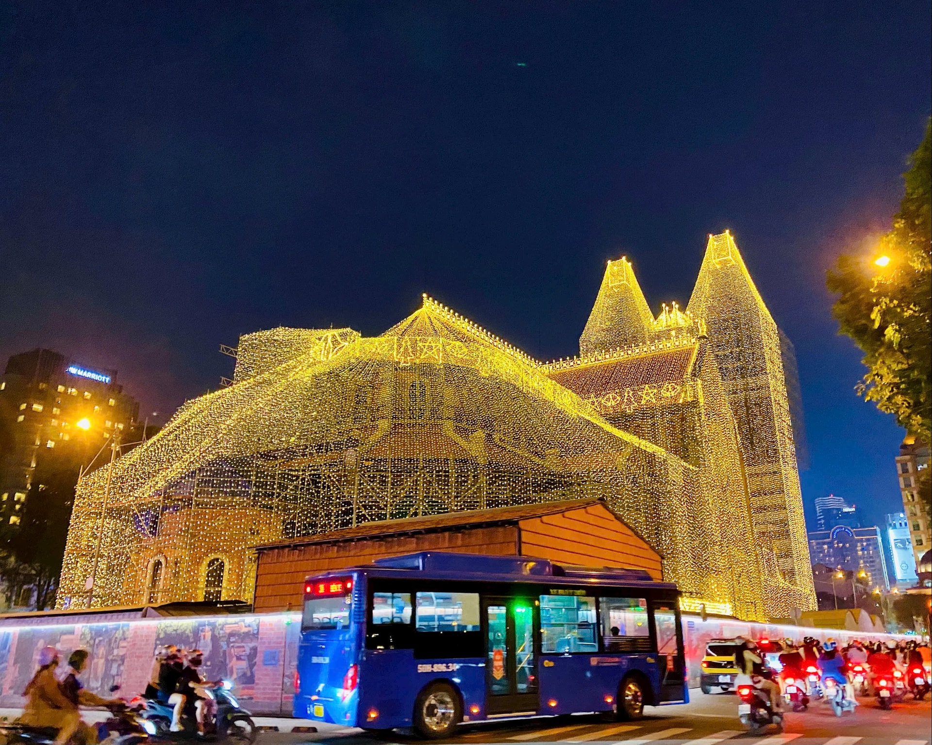 Nhà thờ Đức Bà Sài Gòn, một trong những biểu tượng kiến trúc và tôn giáo của TP HCM, đã chính thức khoác lên mình tấm áo ánh sáng rực rỡ để chào đón mùa Giáng sinh và Năm mới. Hơn 1.000 km dây đèn LED sẽ được thắp sáng mỗi tối, biến công trình cổ kính thành một điểm đến lung linh, thu hút đông đảo người dân và du khách.