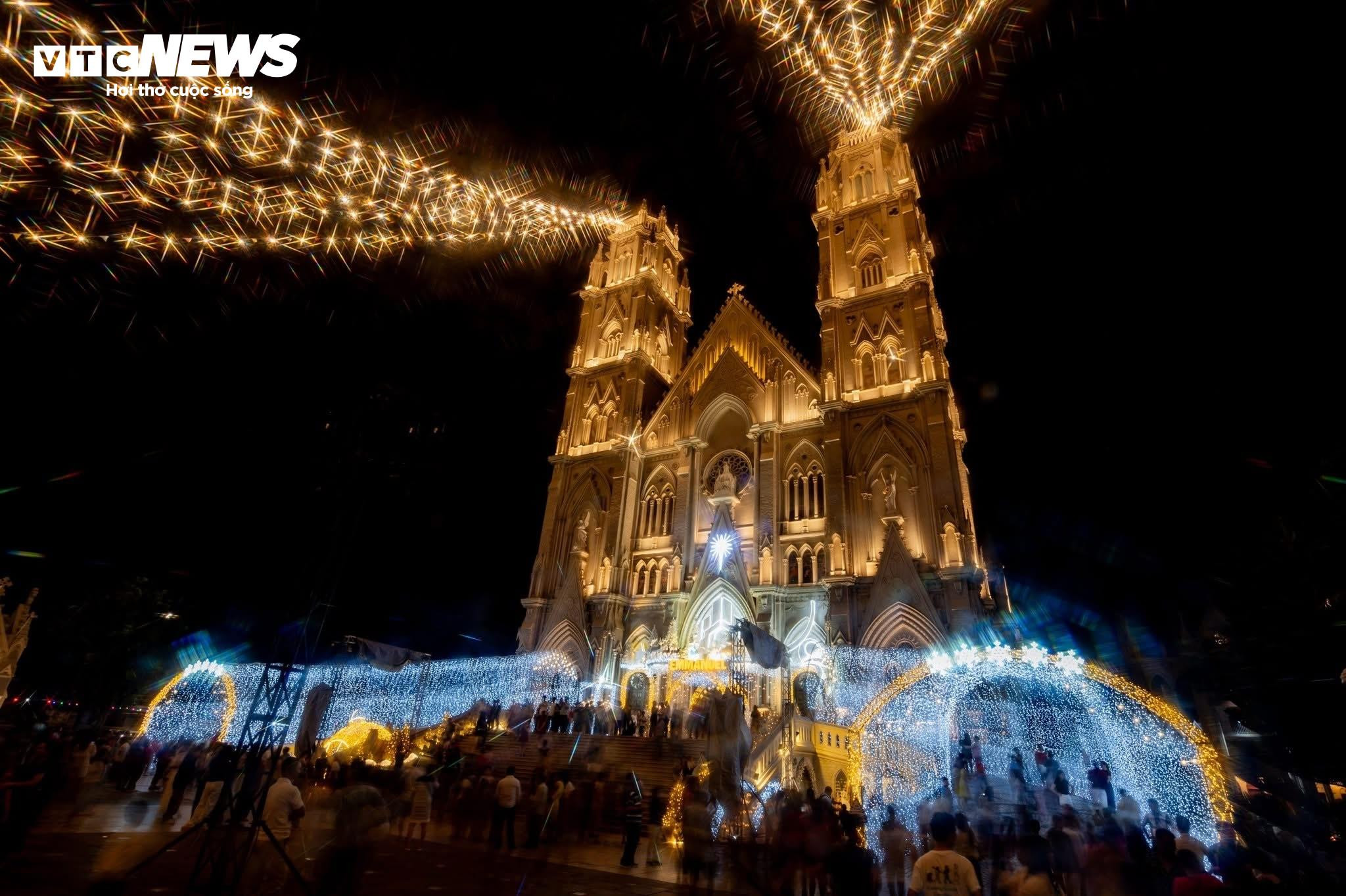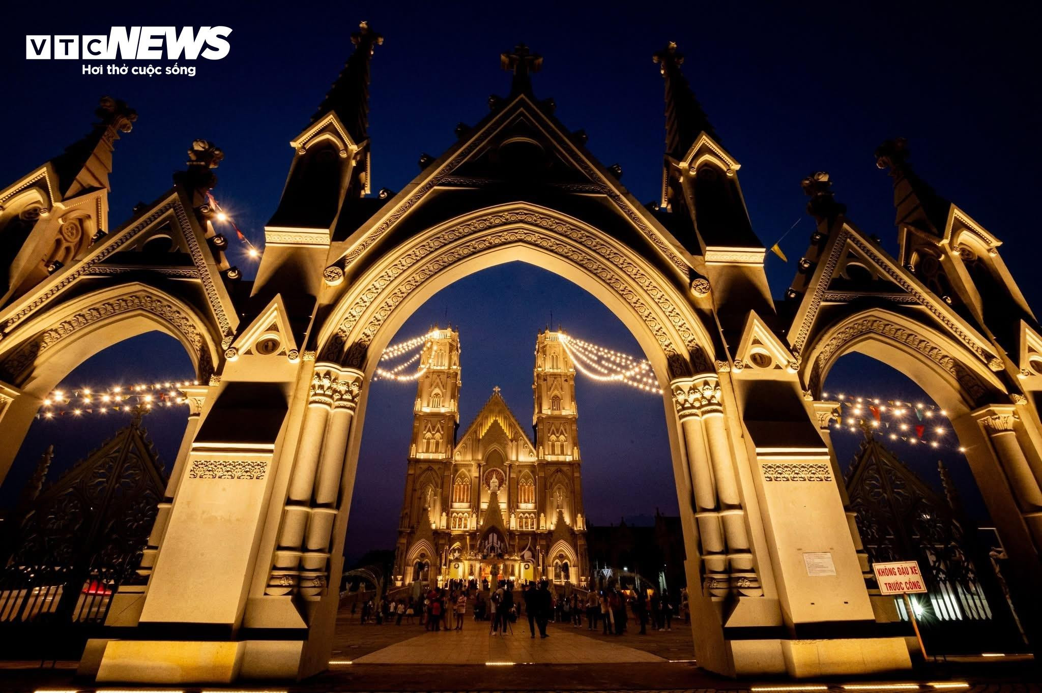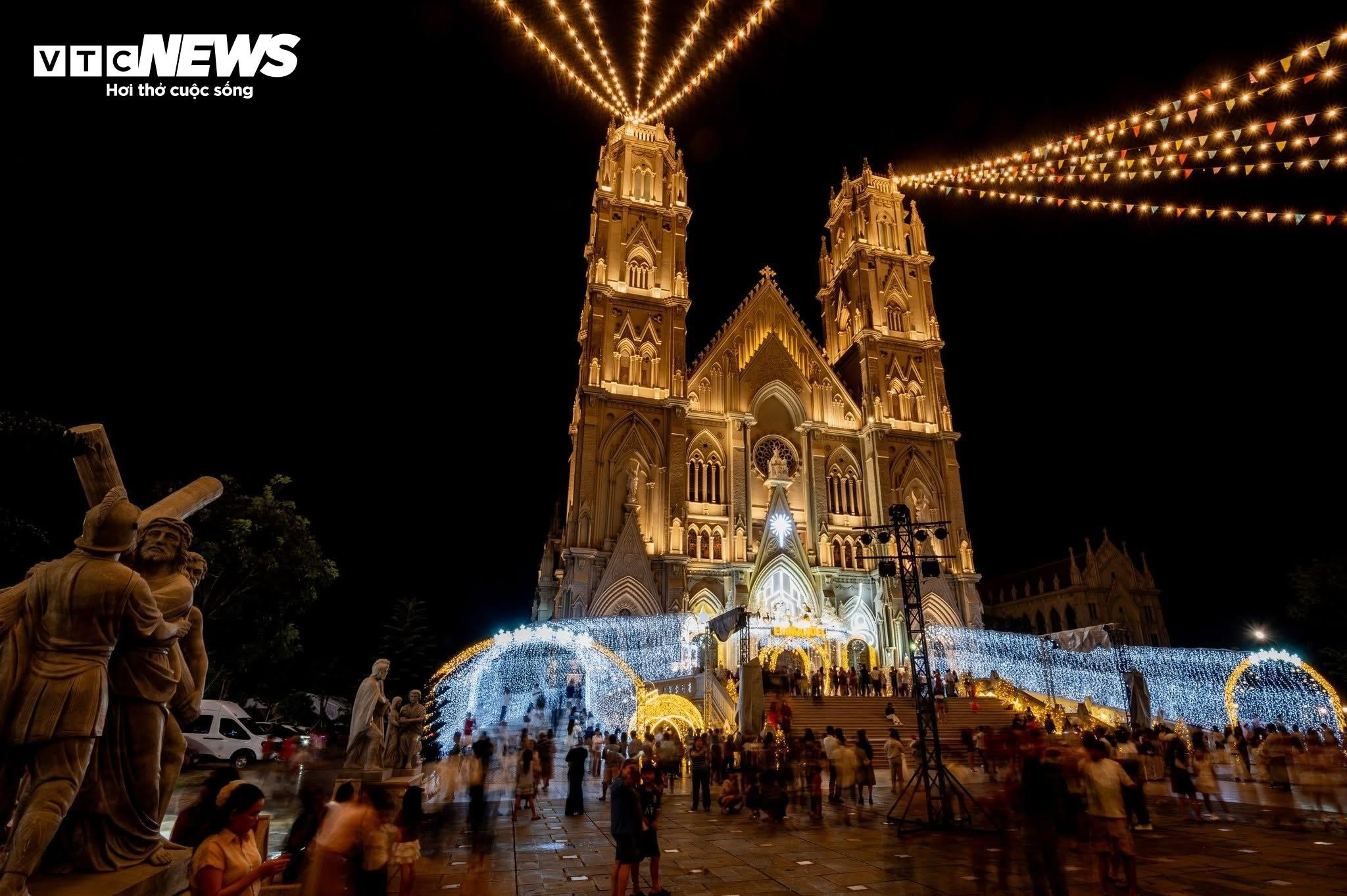 Du khách và giáo dân đến tham quan, tham dự Thánh lễ đêm Giáng sinh.
