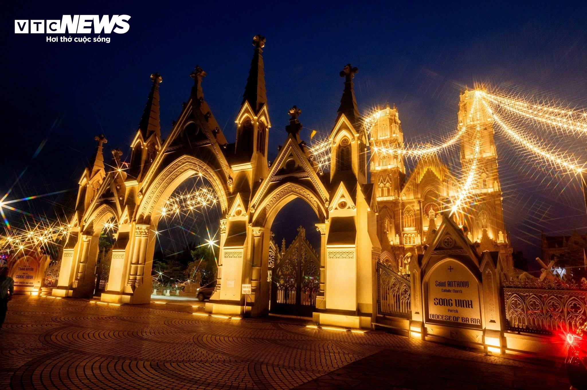 Tối 24/12 - đêm Giáng sinh, nhà thờ Song Vĩnh (quốc lộ 51, phường Tân Phước, TP.HCM), lên đèn rực rỡ, trở thành điểm đến của hàng nghìn du khách đến chụp ảnh, check-in.