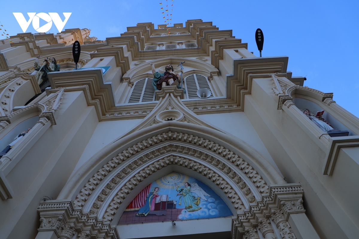 Cận cảnh mặt tiền phía ngoài tháp chuông
