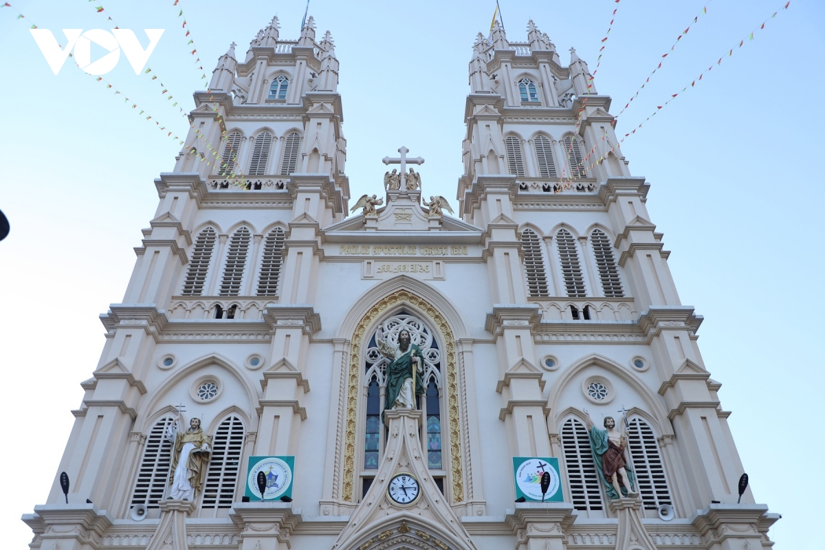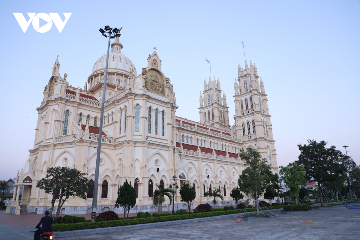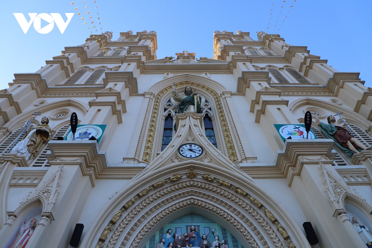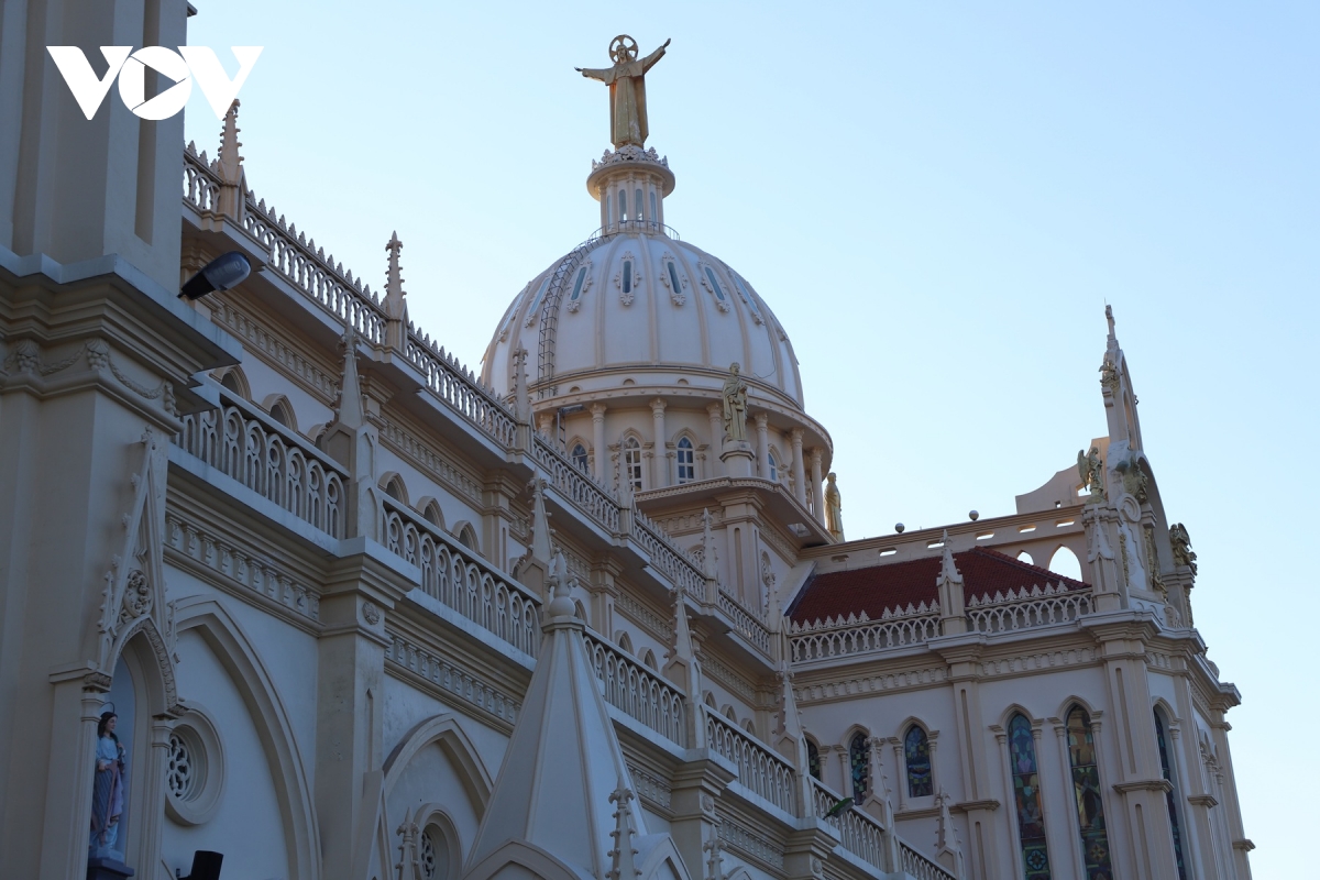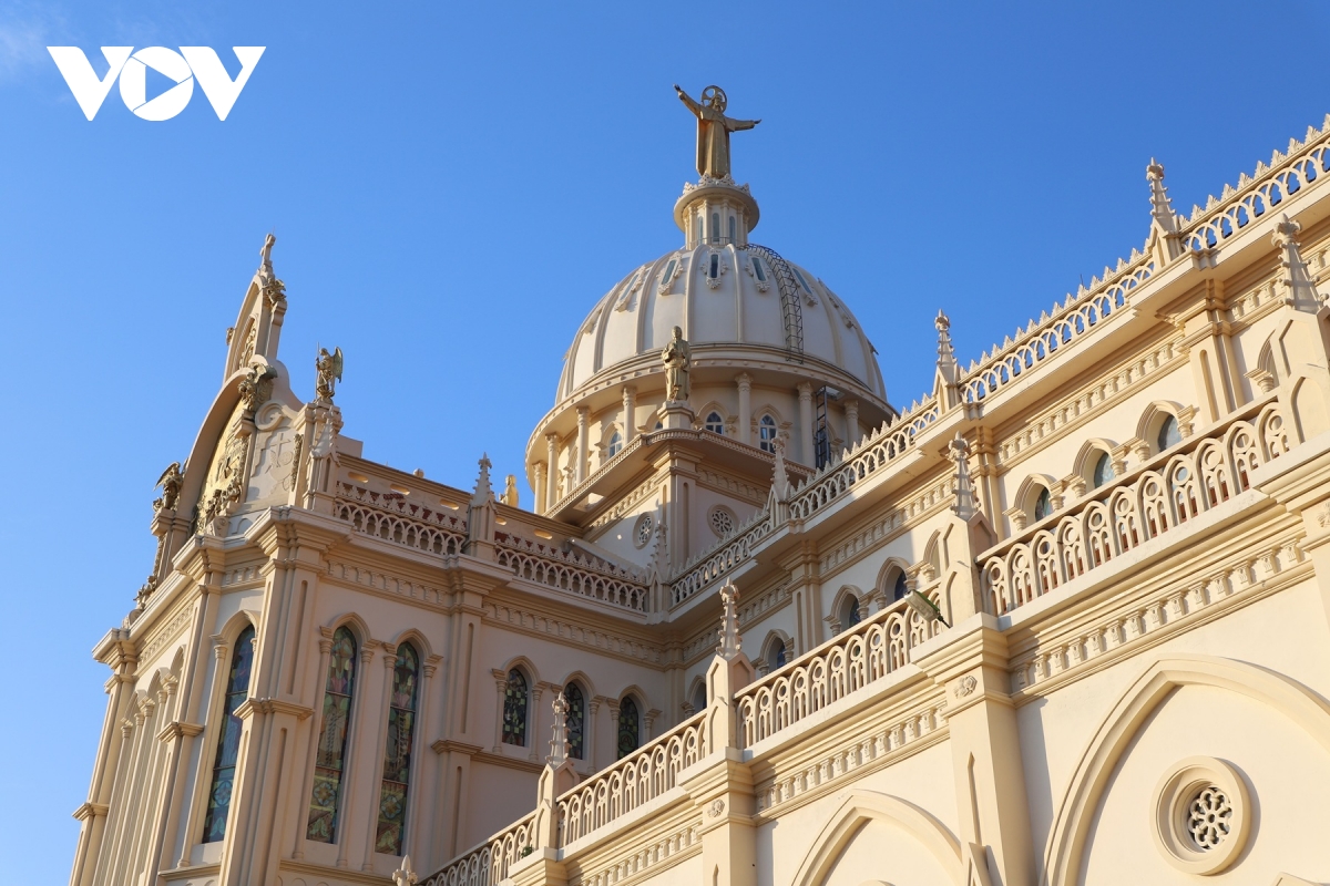Nội thất thánh đường được thiết kế rộng thoáng, trần cao, kết hợp hệ cột lớn tạo sự uy nghi và trang trọng trong các nghi thức phụng vụ.