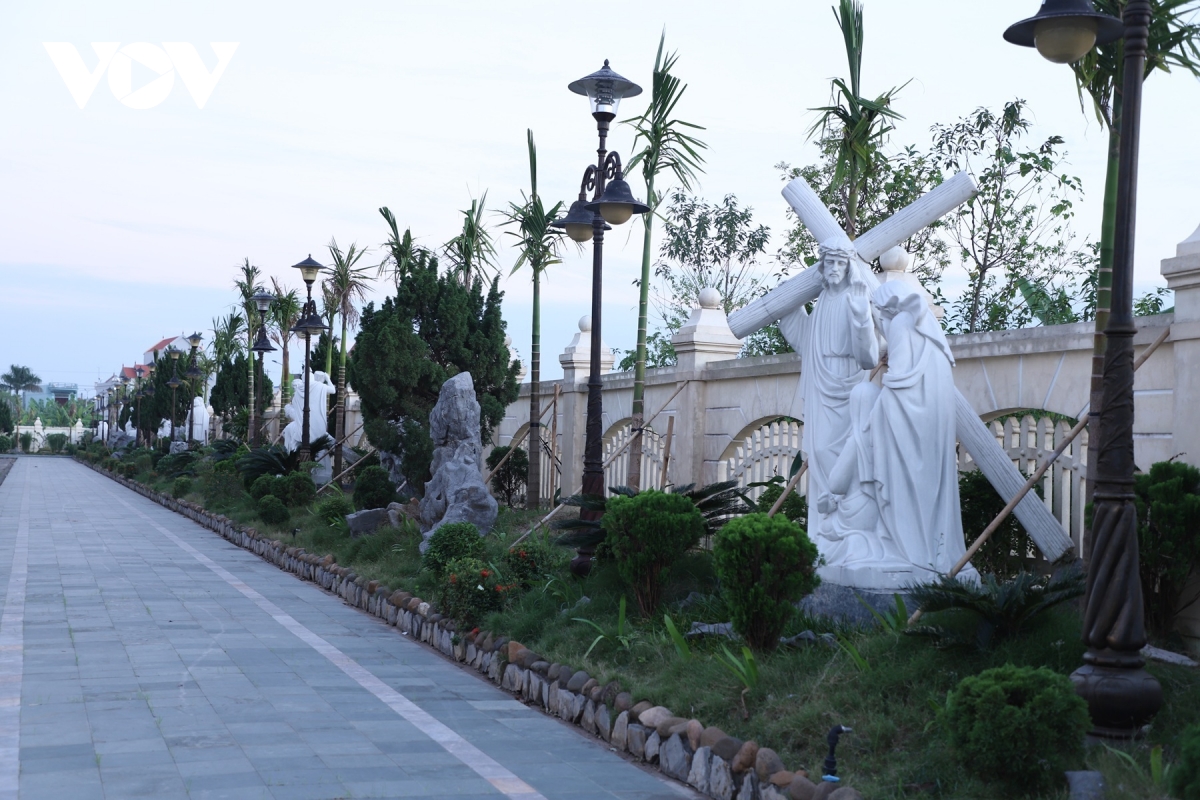Khuôn viên nhà thờ Phú An xanh mát, được quy hoạch chỉnh chu, thể hiện nỗ lực xây dựng đời sống đạo sau nhiều thăng trầm lịch sử.