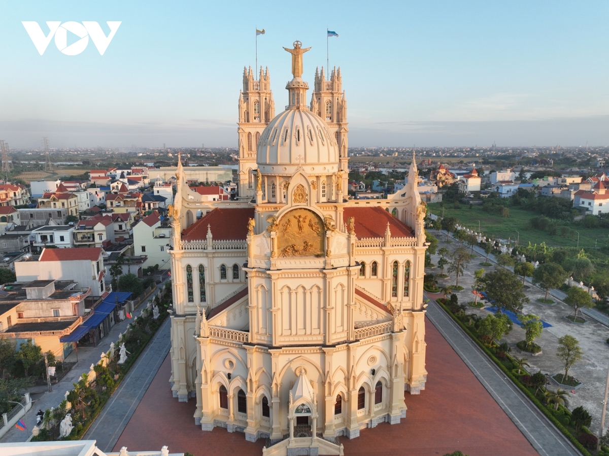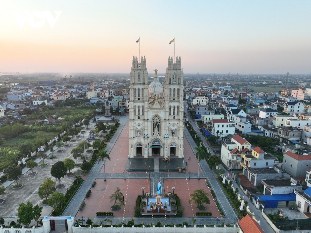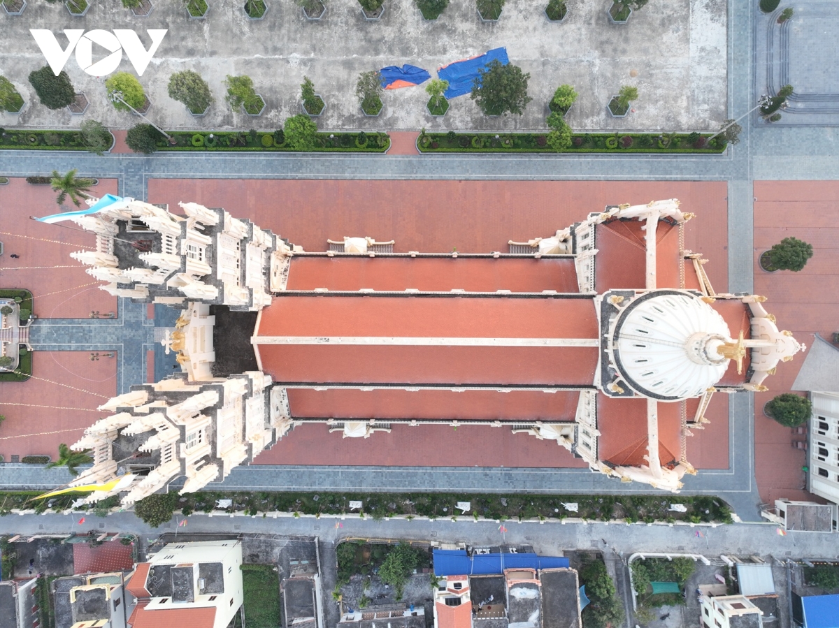 Toàn cảnh Nhà thờ Phú An nhìn từ trên cao, công trình tôn giáo quy mô lớn của giáo phận Bùi Chu, nổi bật với kiến trúc hiện đại kết hợp truyền thống.