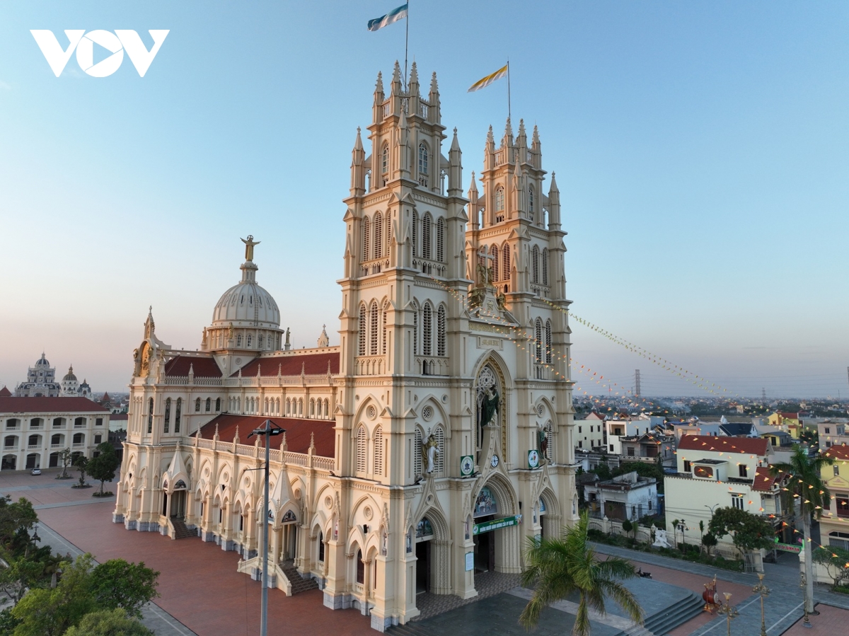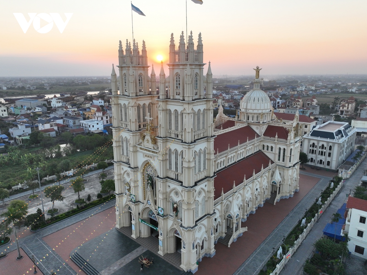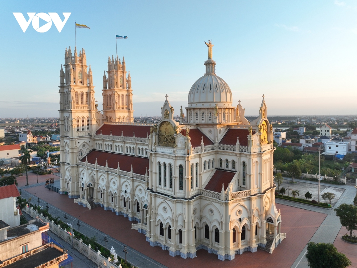 Toàn cảnh Nhà thờ Phú An nhìn từ trên cao, công trình tôn giáo quy mô lớn của giáo phận Bùi Chu, nổi bật với kiến trúc hiện đại kết hợp truyền thống.