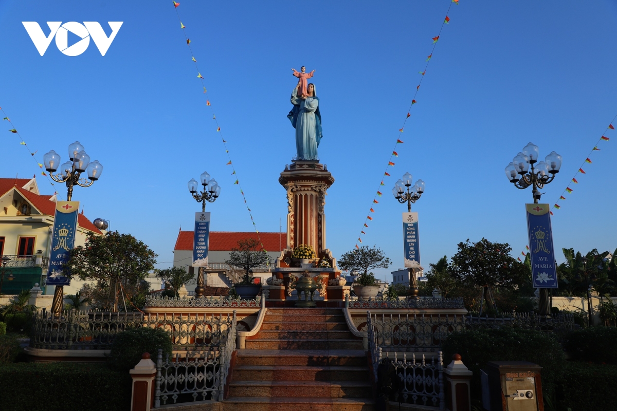 Đài Đức Mẹ đặt cuối hồ nước phía sau thánh đường, không gian hành hương và cầu nguyện quen thuộc của giáo dân Phú An.