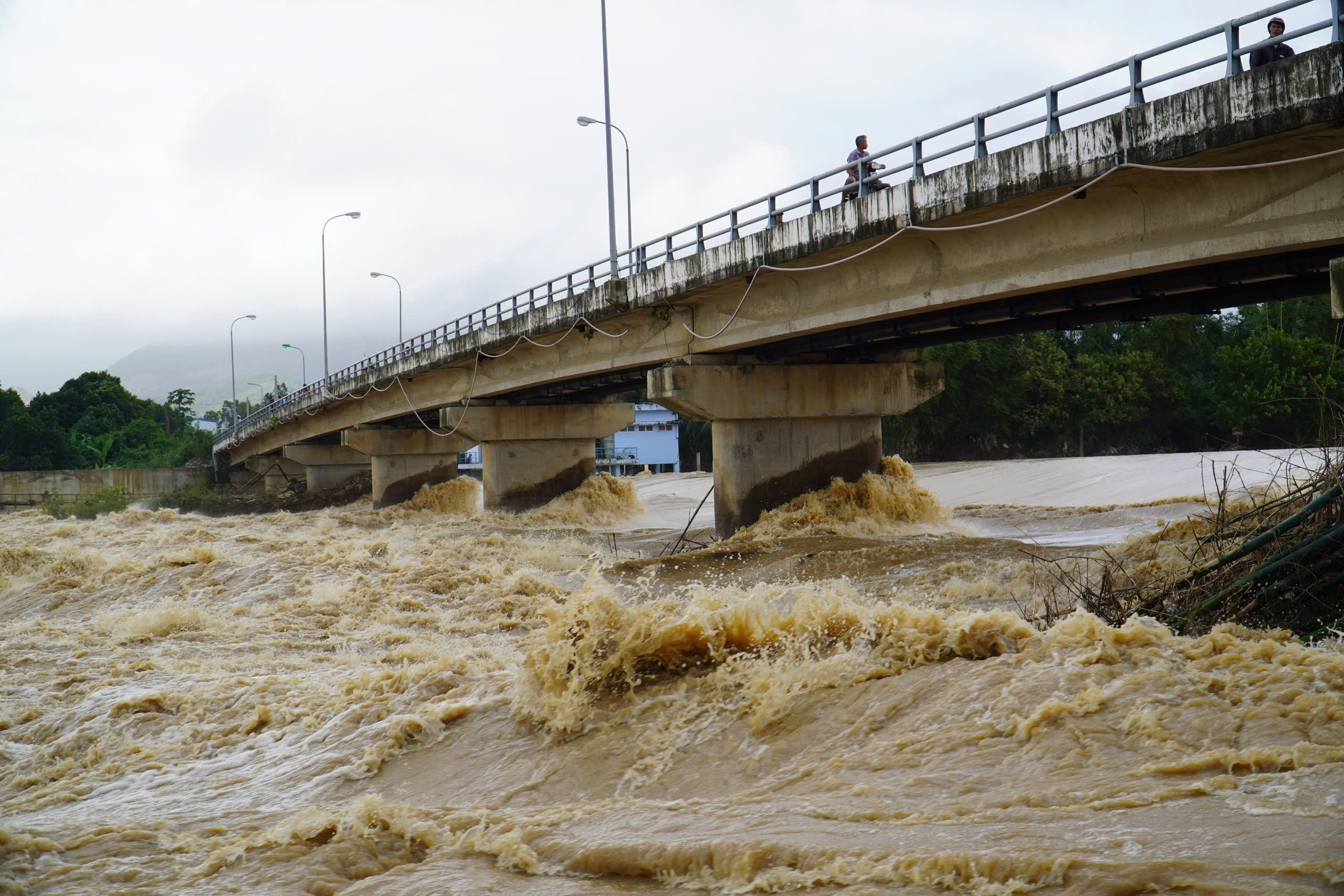 Nước sông Cái Nha Trang đoạn qua cầu Vĩnh Phương đang dâng cao.