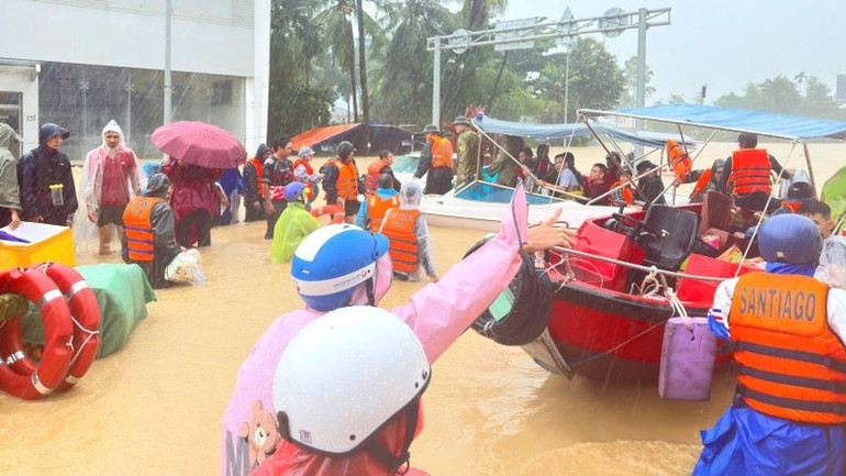 Trung tá Vũ Anh Tú, Đồn trưởng Đồn Biên phòng Cửa khẩu Cảng Nha Trang cho biết, từ sáng tới giờ, chúng tôi đã cứu được rất nhiều bà con ra khỏi vùng nguy hiểm. Hiện chúng tôi đang huy động thêm 5 ca-nô và 3 phương tiện zacky để hỗ trợ bà con phường Tây Nha Trang, bảo đảm đưa người dân ra ngoài an toàn.