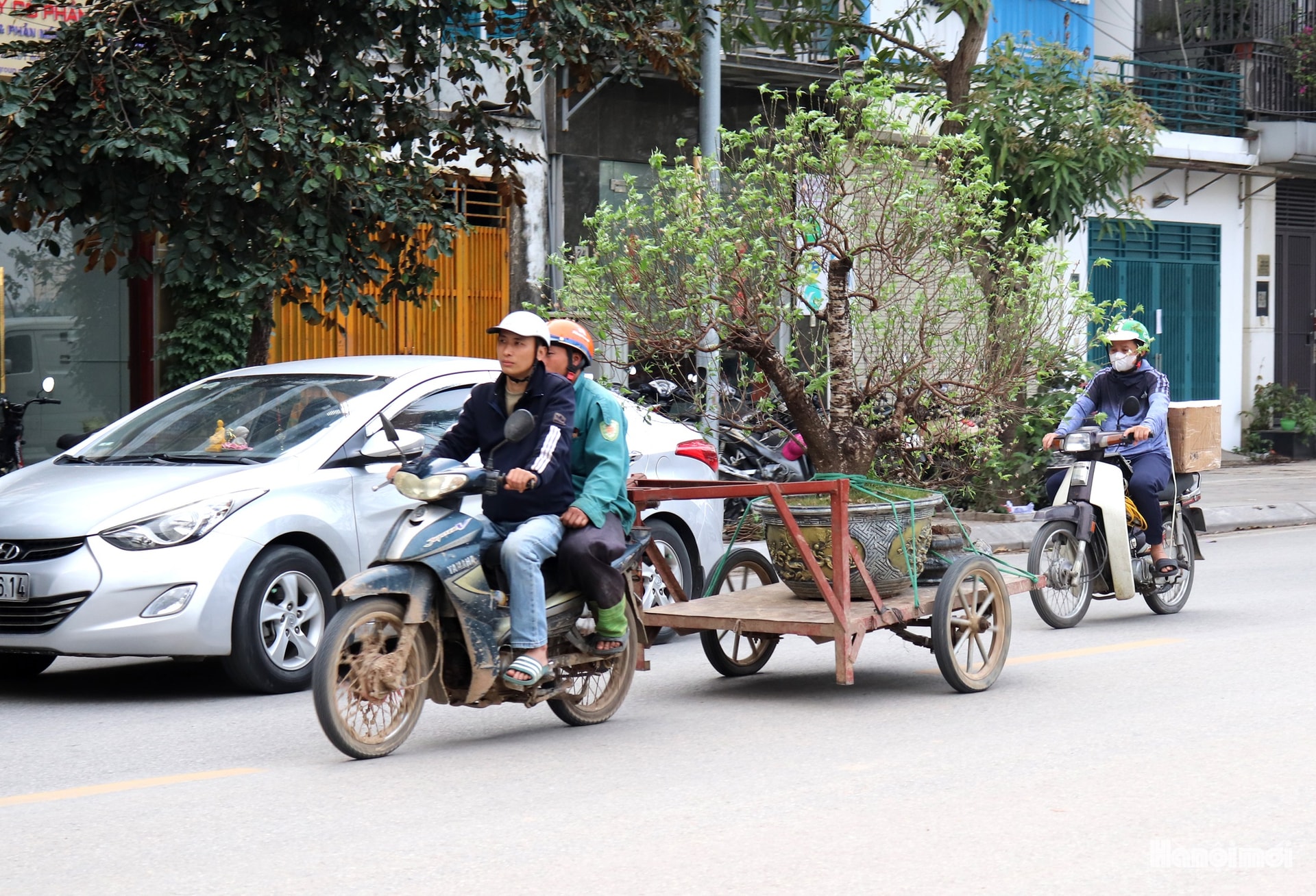 Những gốc đào được khách thuê chơi Tết được vận chuyển trở lại nhà vườn để tiến hành cắt tỉa cành, chăm sóc phục hồi chuẩn bị cho vụ mới. Ảnh: Tuấn Điệp