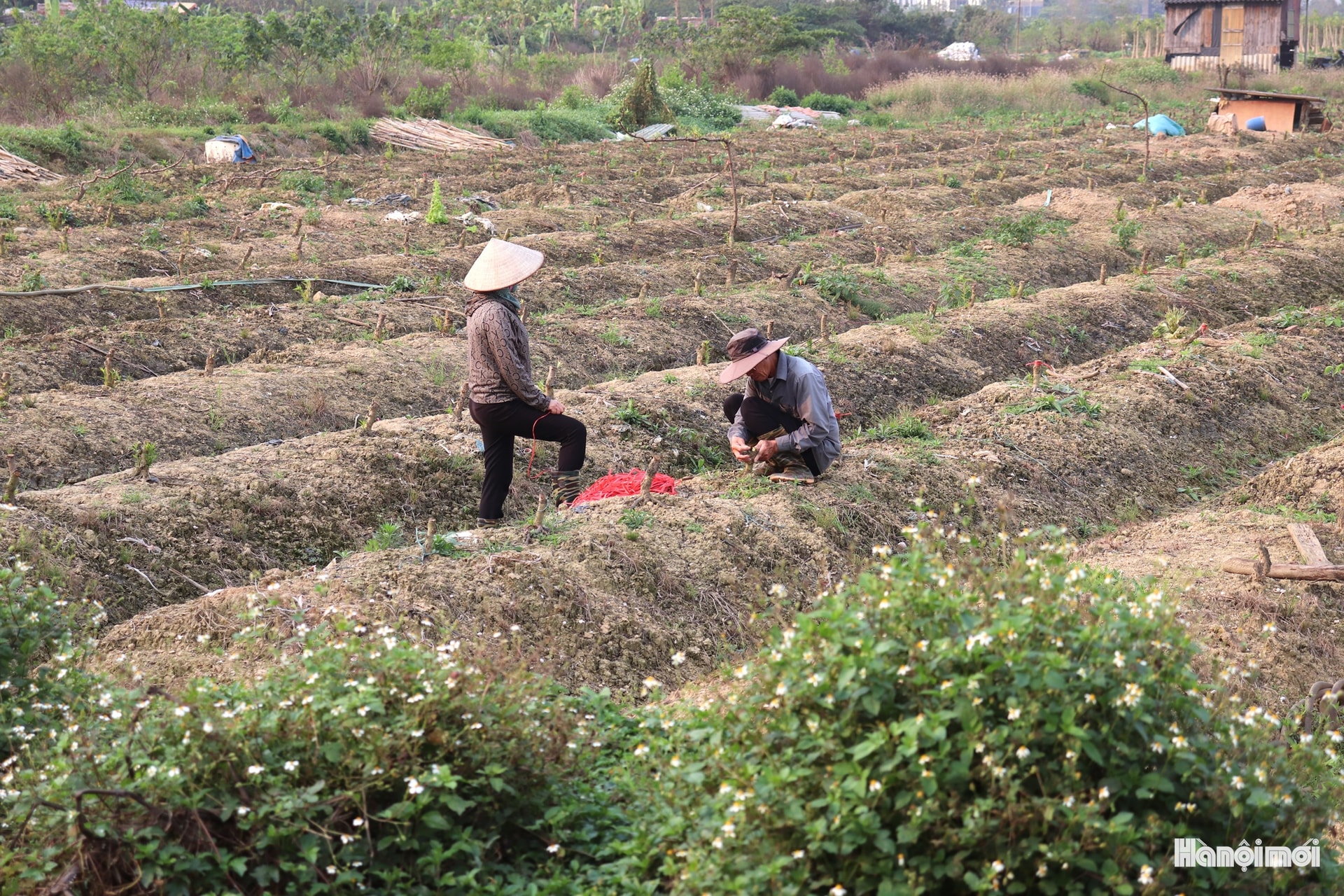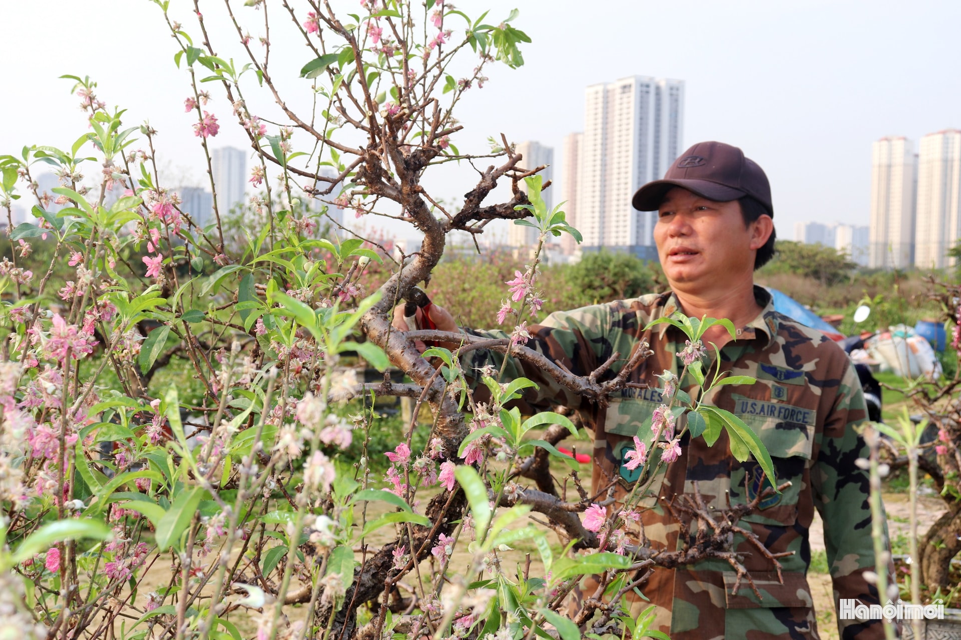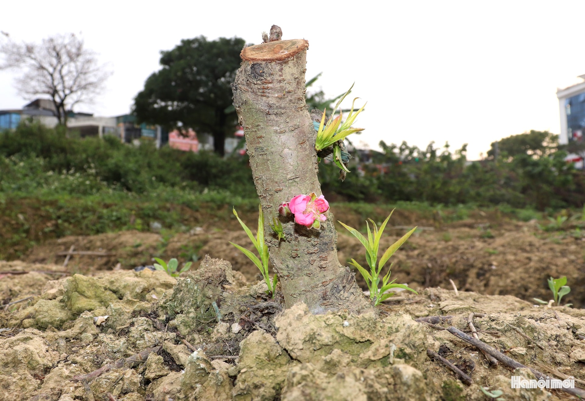 Tại các vườn đào, không khí lao động diễn ra khẩn trương với nhiều công đoạn như cắt tỉa, trồng lại xuống đất, tưới bổ sung và ghép mắt vào gốc đào nhằm phục vụ nguồn cây và cành chơi Tết.