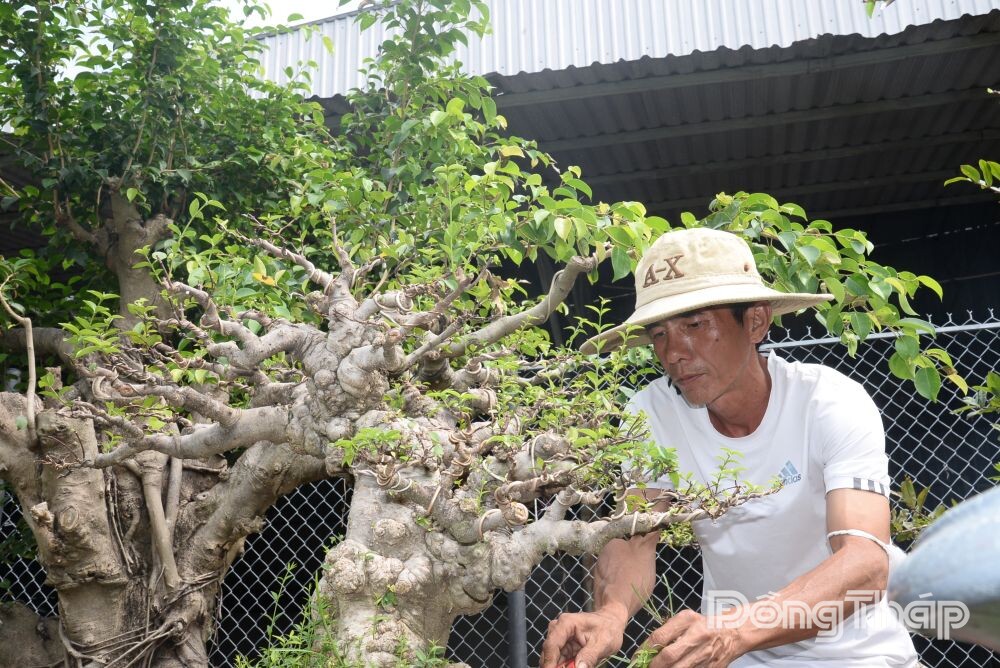 Anh Liệt cho biết, mỗi loại cây có đặc điểm sinh trưởng khác nhau, vì vậy việc tỉa lá, tạo tán phải được thực hiện đúng thời điểm, cẩn trọng trong từng thao tác để tránh làm gãy cành, phá dáng thế tự nhiên của cây.