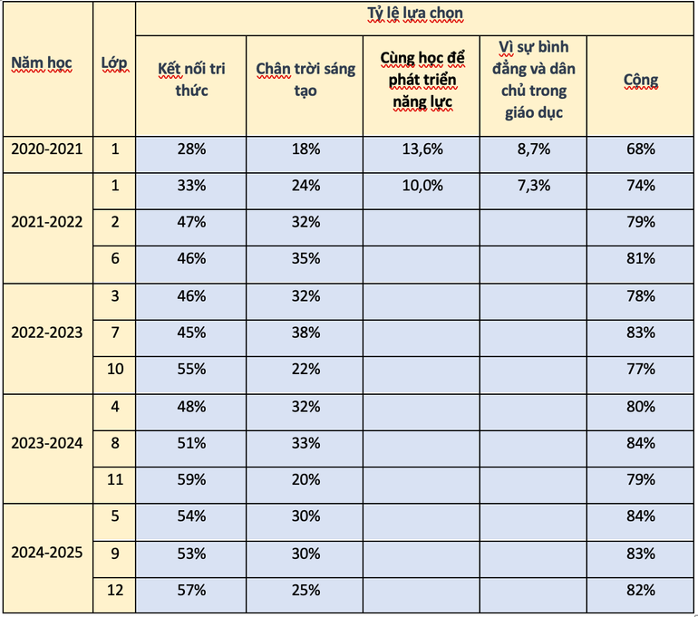 Tổng hợp tình hình lựa chọn các bộ sách giáo khoa của Nhà xuất bản giáo dục các năm vừa qua: