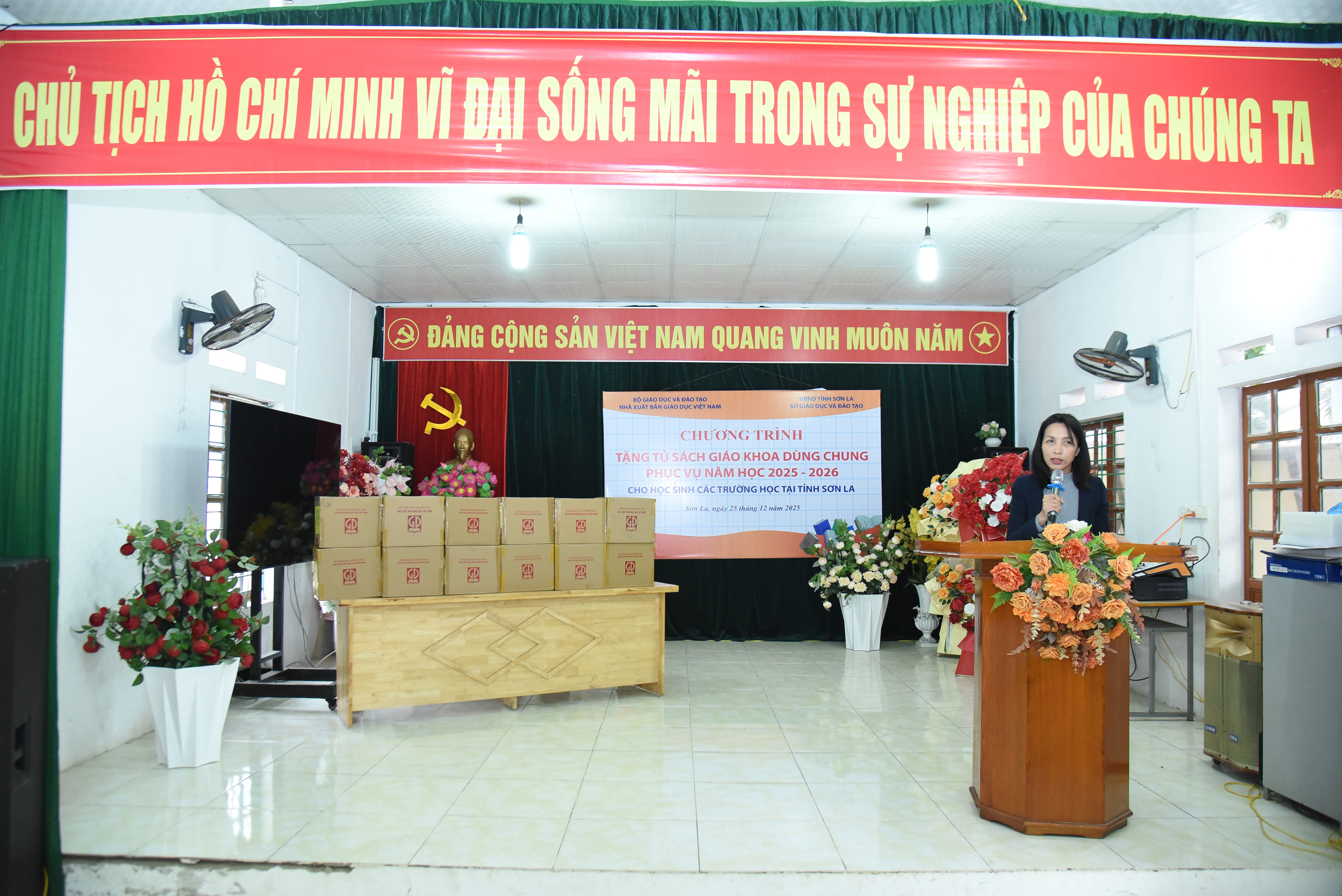 Theo đó, Nhà xuất bản Giáo dục Việt Nam (NXBGDVN) trao tặng hơn 80.000 bản sách trị giá 1.143.727.500 đồng cho các trường học trên địa bàn xã Phù Yên, Sơn La bao gồm: Trường THCS Thị Trấn; Trường THCS Võ Thị Sáu; Trường THPT Tân Lang; Trường THPT Bắc Yên.