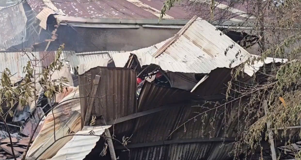 Tại hiện trường, mọi thứ ngổn ngang, mái tôn nhà xưởng đổ sập.