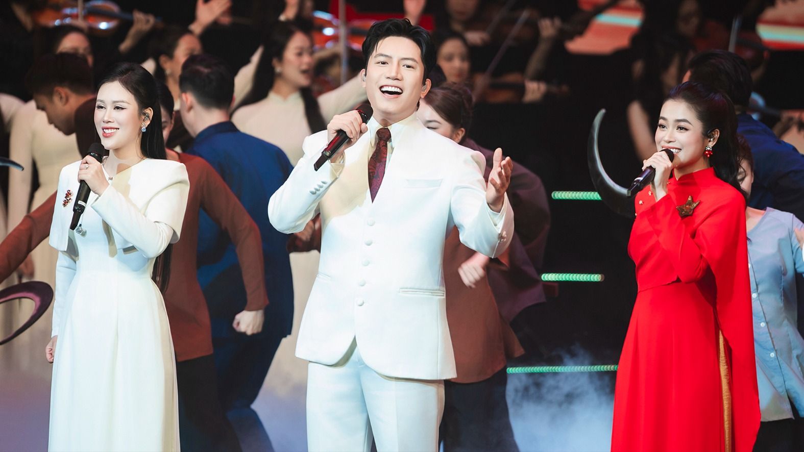 Anh Tú và các nghệ sĩ trình diễn trong chương trình nghệ thuật chính luận Mãi mãi niềm tin theo Đảng