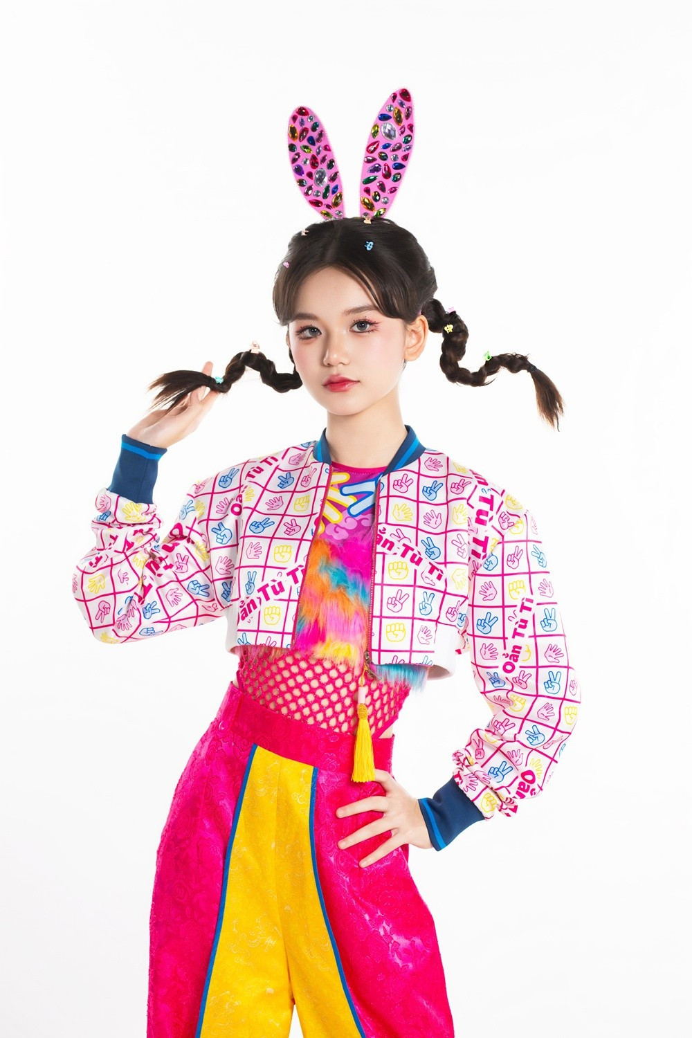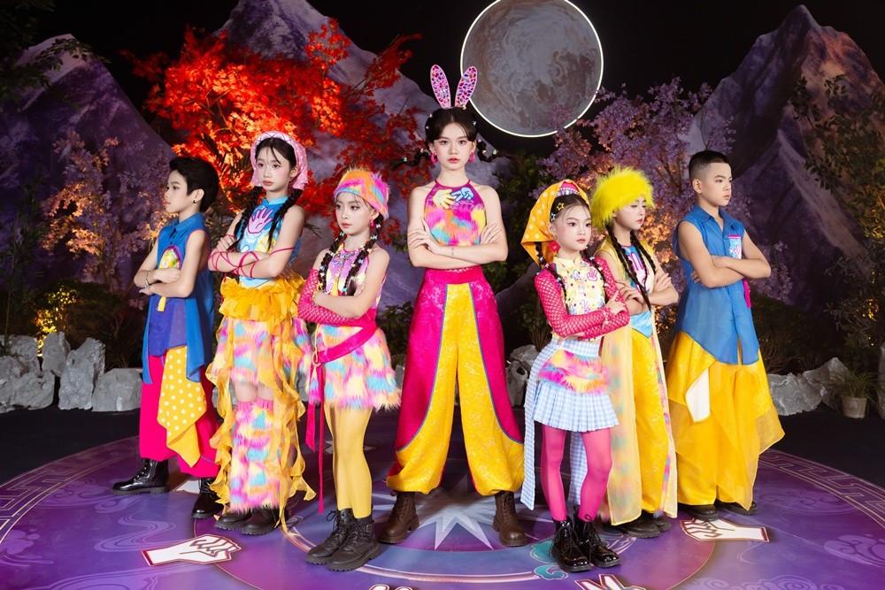 Ở trung tâm lễ hội ấy, ca sĩ nhí Kim Cương đóng vai trò “thủ lĩnh hội làng”, người dẫn dắt toàn bộ cuộc chơi bằng năng lượng bùng nổ. Tạo hình của Kim Cương vừa mang nét dân gian truyền thống, vừa mang màu sắc EDM hiện đại, tạo nên một phong thái tươi mới, tự tin và tràn đầy sức sống.
