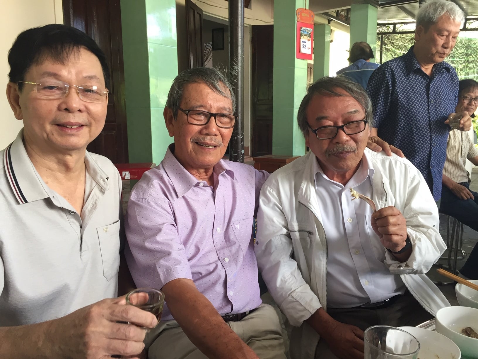 Từ phải qua: Nhạc sĩ Đynh Trầm Ca - nhà thơ Hoàng Lộc - nhà văn Nguyễn Ngọc Hạnh - Ảnh: FB Hoàng Lộc