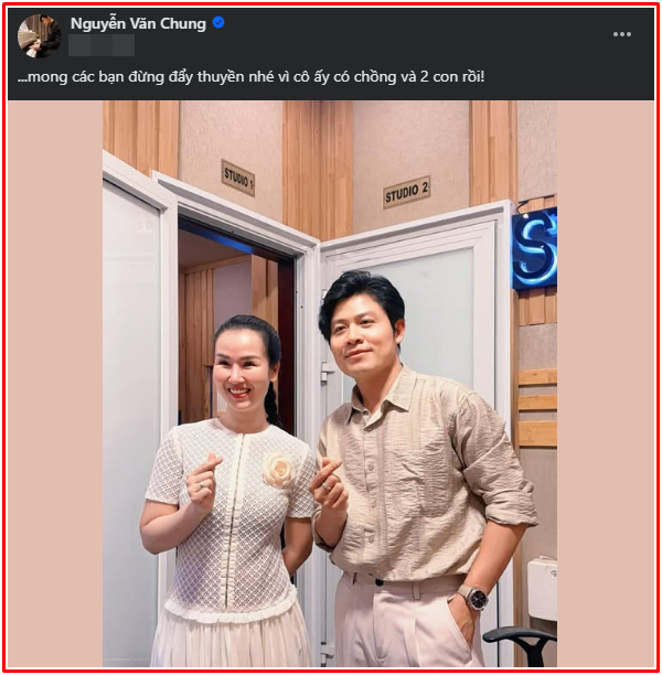 Đi kèm với bức ảnh, Nguyễn Văn Chung không quên thể hiện sự hài hước quen thuộc khi viết: "Mong các bạn đừng đẩy thuyền nhé vì cô ấy có chồng và 2 con rồi!". Dòng chú thích vui vẻ không chỉ khiến người hâm mộ bật cười mà còn cho thấy mối quan hệ đồng nghiệp thân thiết, thoải mái giữa nam nhạc sĩ và nữ ca sĩ. Tuy nhiên, phía sau câu nói đùa ấy là sự tò mò ngày càng lớn của khán giả về khả năng cả hai đang âm thầm chuẩn bị cho một dự án âm nhạc chung.