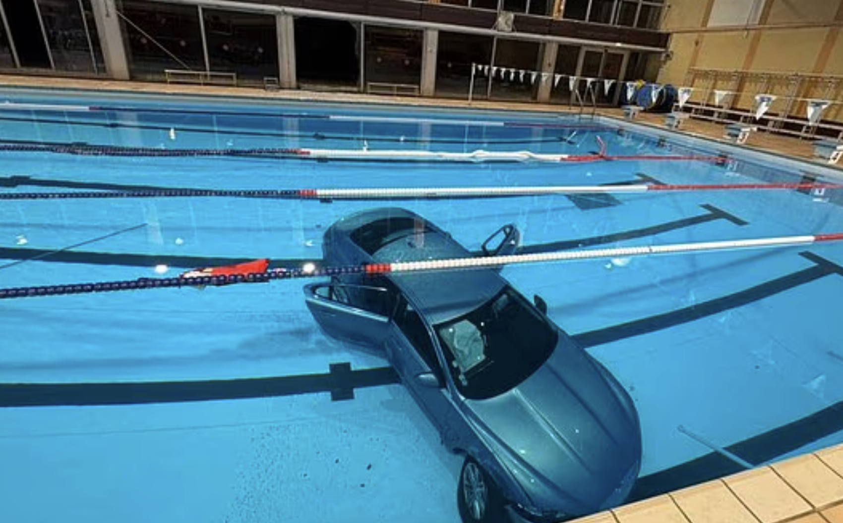 Sau tai nạn, bể bơi này sẽ phải đóng cửa trong vài tuần, do khoảng nước trong bể bị ô nhiễm bởi chiếc xe cần được xả thải và xử lý.