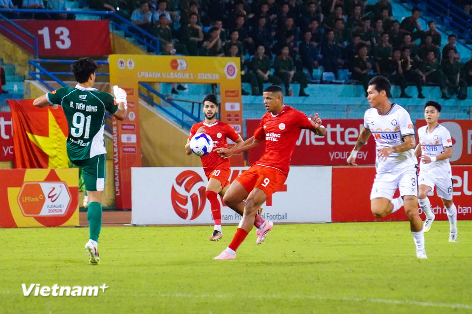 Tối 20/10, chủ nhà Thể Công-Viettel giành chiến thắng 2-1 trước đội khách SHB Đà Nẵng ở trận đấu muộn nhất vòng 7 V-League 2025/2026. (Ảnh: Việt Anh/Vietnam+)