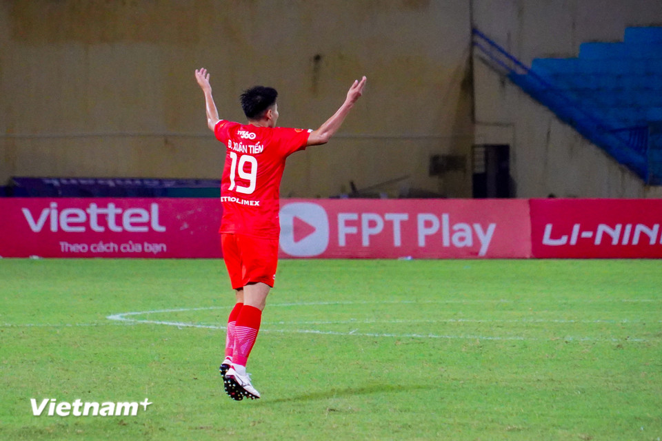 Những nỗ lực hãm thành của Thể Công được cụ thể hóa thành bàn gỡ 1-1 với pha dứt điểm của Đinh Xuân Tiến ở phút thứ 69. (Ảnh: Việt Anh/Vietnam+)