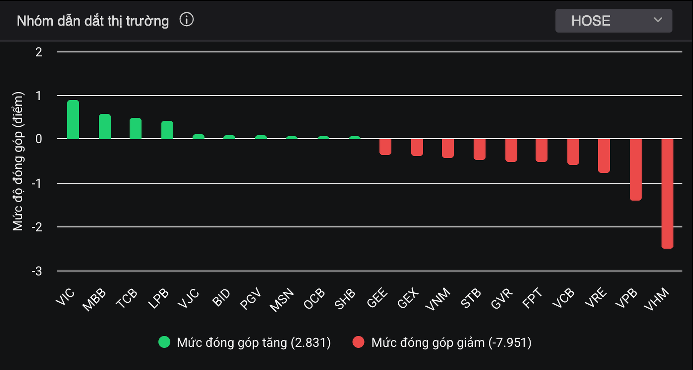 Phiên giao dịch hôm nay (2/10), VN-Index để mất mốc 1.660 điểm, cổ phiếu trụ đồng loạt điều chỉnh. Tính từ mức cao nhất đạt được trong phiên sáng 1.679 điểm, chỉ số chính đã giảm tới 27 điểm. 20/30 cổ phiếu VN30 giảm giá, trong đó các mã trụ như VHM, VPB, VRE, VCB… lần lượt gây ảnh hưởng tiêu cực.