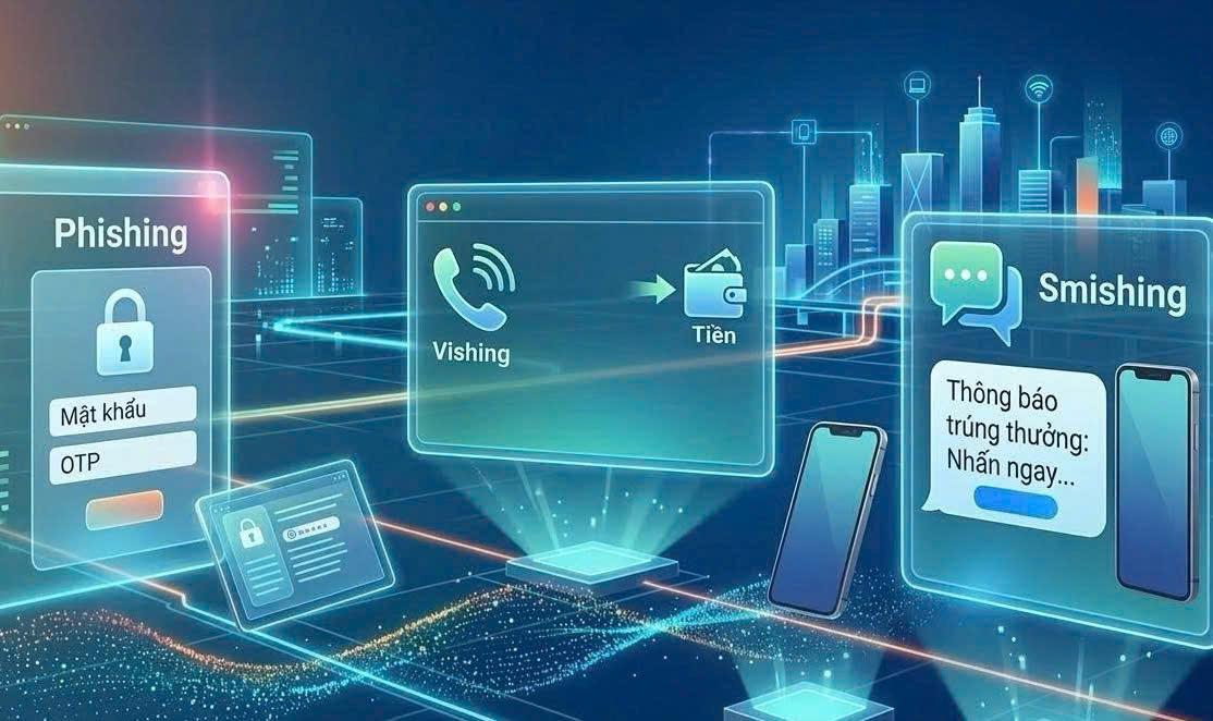 Thực tế diễn biến tội phạm mạng tại Việt Nam thời gian qua cho thấy sự chuyển dịch mạnh mẽ từ các phương thức tấn công kỹ thuật thuần túy sang tấn công phi kỹ thuật, hay còn gọi là Social Engineering. Đây là hình thức mà kẻ tấn công không đánh vào lỗ hổng của phần mềm mà đánh trực tiếp vào tâm lý con người thông qua sự nhẹ dạ, thiếu cảnh giác hoặc nỗi sợ hãi đối với các cơ quan công quyền. Ba hình thức tiêu biểu đang hoành hành hiện nay bao gồm Phishing qua email, Vishing qua giọng nói và Smishing qua tin nhắn SMS, chúng tạo nên một hệ sinh thái lừa đảo bao trùm khiến người dùng rất dễ sập bẫy, nếu không có sự đề phòng thường trực.