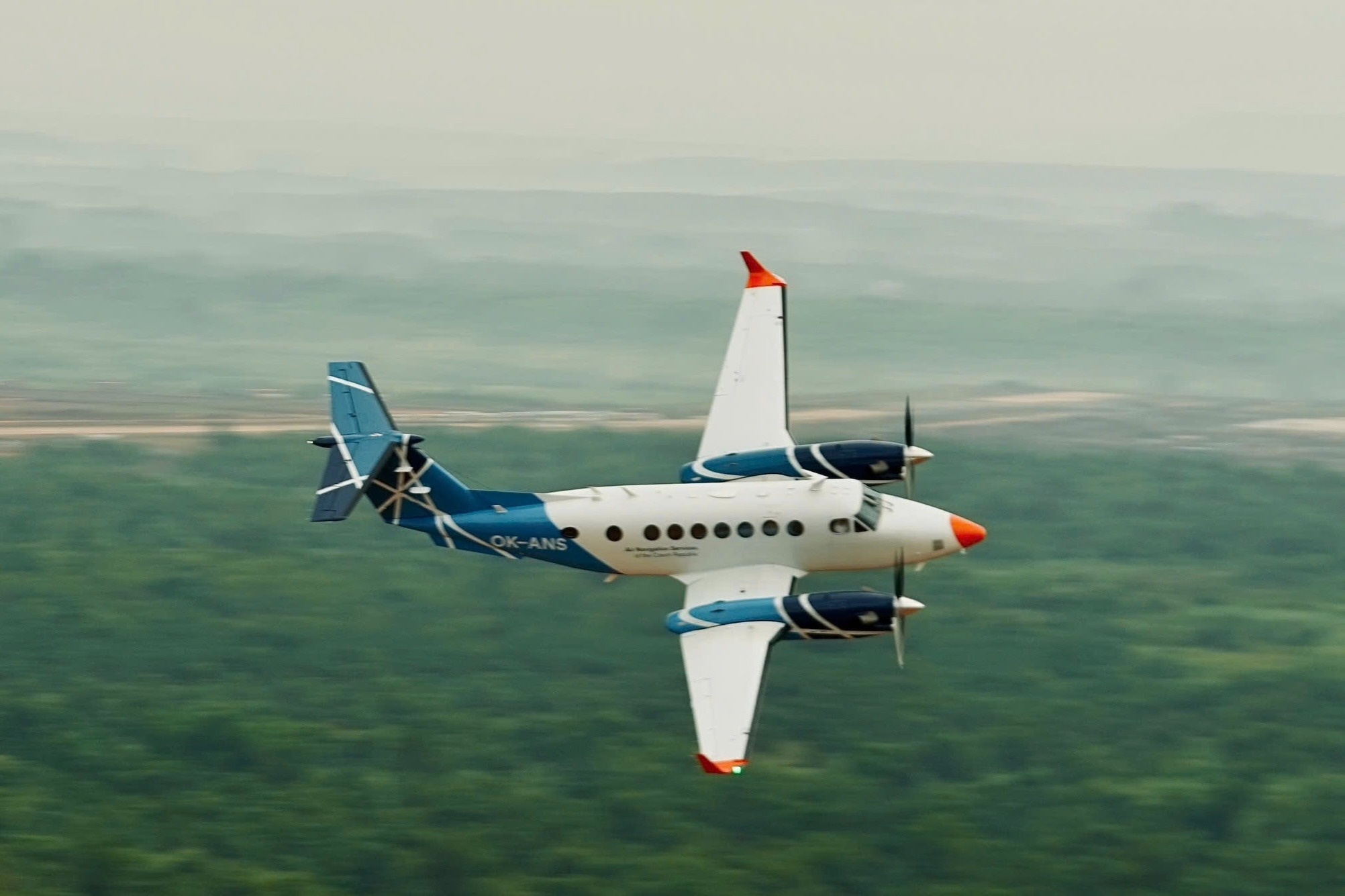 Sáng 26/9, tàu Beechcraft KingAir 300 series thực hiện bay hiệu chuẩn tại sân bay Long Thành. Đây là bước kiểm tra bắt buộc và rất quan trọng trong lộ trình đưa "siêu" cảng hàng không này đi vào khai thác. Ảnh: Quang Thông.