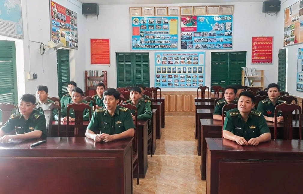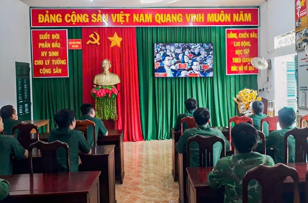 Cán bộ, chiến sĩ Đồn Biên phòng Đắk Ken xem truyền hình trực tiếp khai mạc Đại hội đại biểu Đảng bộ tỉnh Lâm Đồng lần thứ I