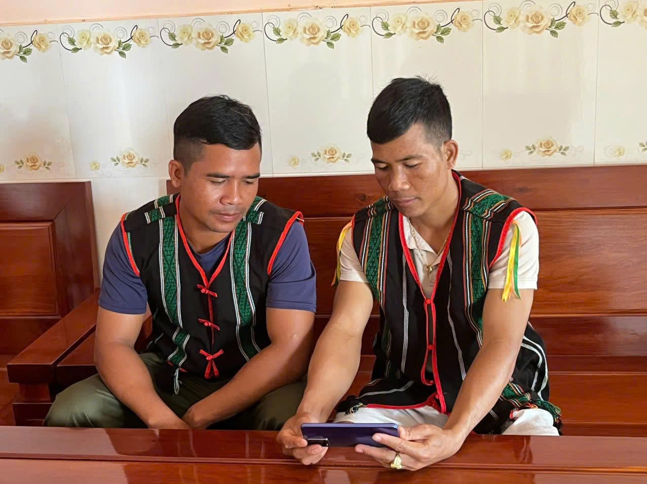 Ngay từ sáng sớm, ông Đinh Văn Năm và bạn ở Tổ dân phố 4, phường Đông Gia Nghĩa đã chuẩn bị sẵn điện thoại thông minh để kịp thời theo dõi diễn biến Đại hội với niềm tin Đại hội sẽ diễn ra thành công tốt đẹp