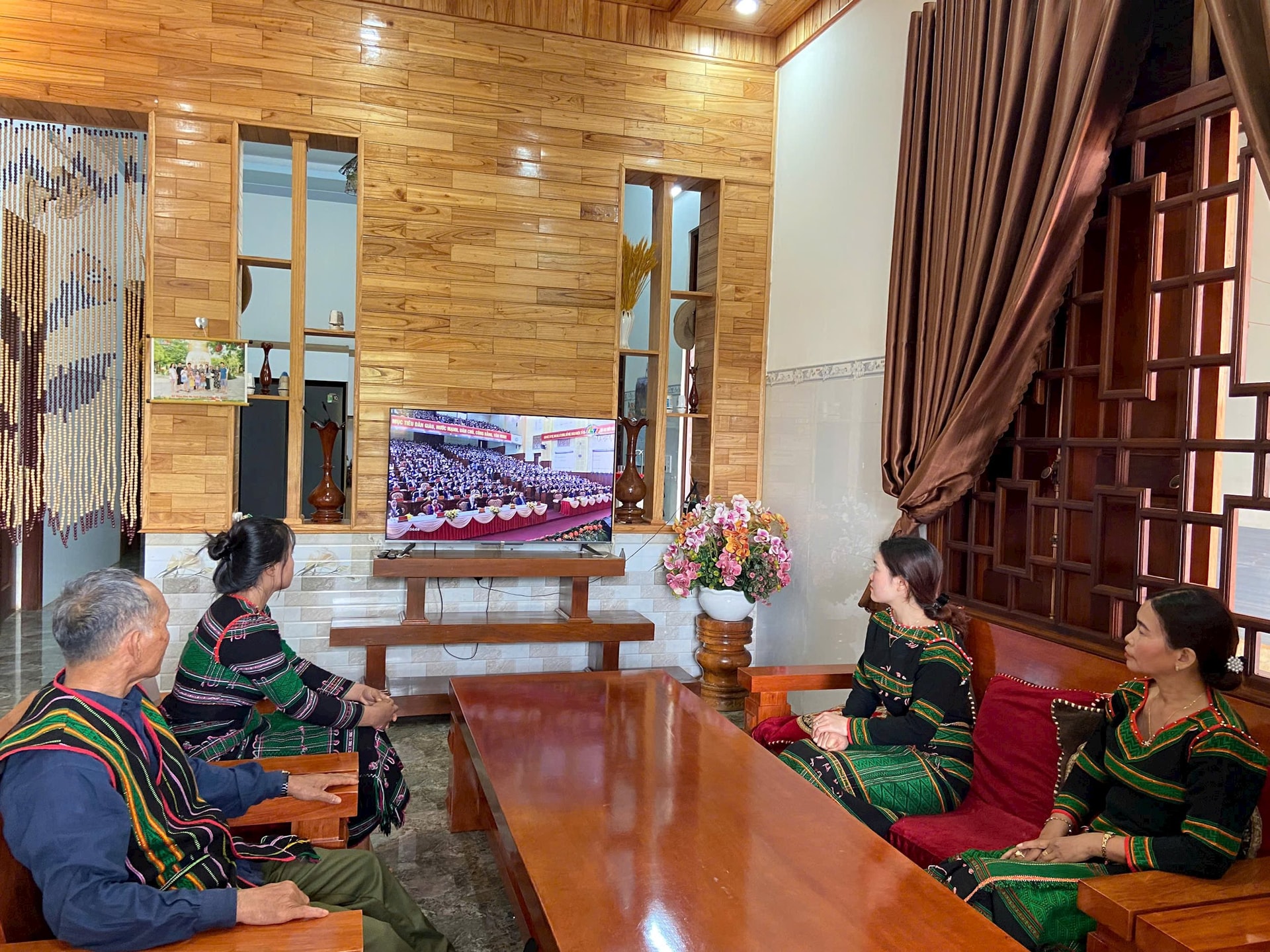Tại các hộ gia đình, mặc dù bận rộn với công việc làm, nhưng đông đảo các tầng lớp Nhân dân cũng đã dành thời gian, chăm chú theo dõi kỹ diễn biến của Đại hội thông qua kênh truyền hình tỉnh Lâm Đồng.