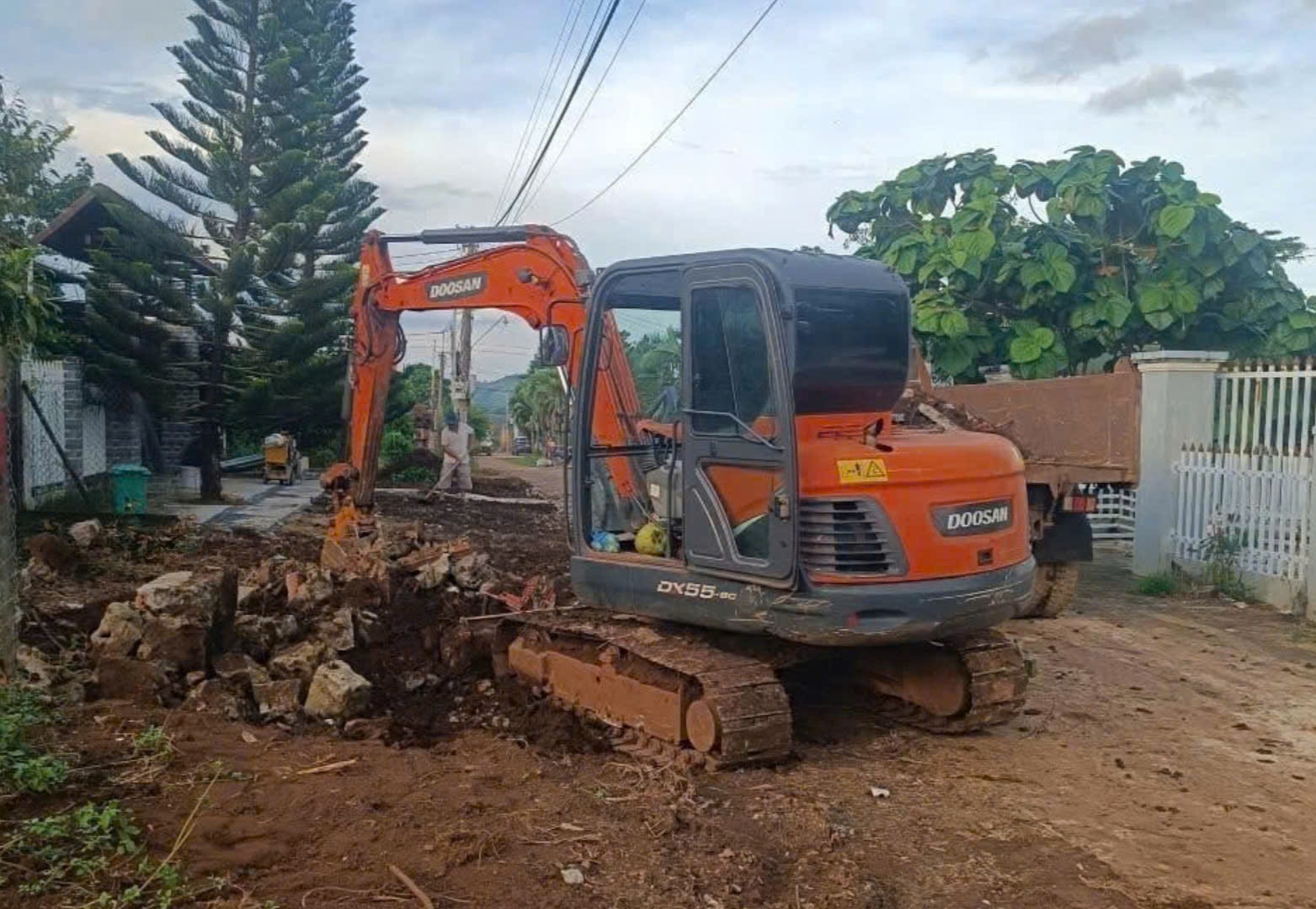 Thi công nâng cấp, mở rộng các tuyến đường trung tâm xã