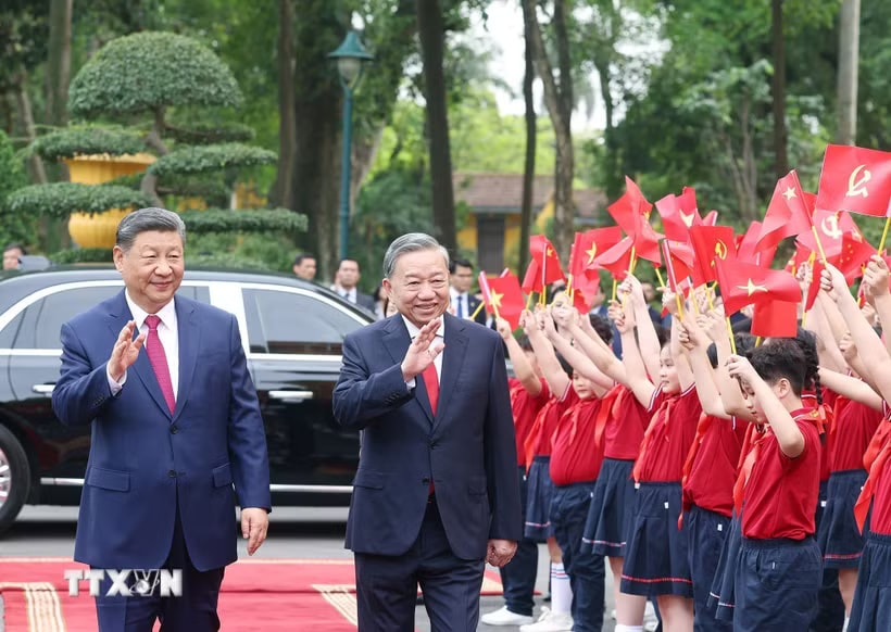 Tổng Bí thư Tô Lâm đón Tổng Bí thư, Chủ tịch nước Trung Quốc Tập Cận Bình thăm cấp Nhà nước tới Việt Nam vào tháng 4/2025. Ảnh: Thống Nhất