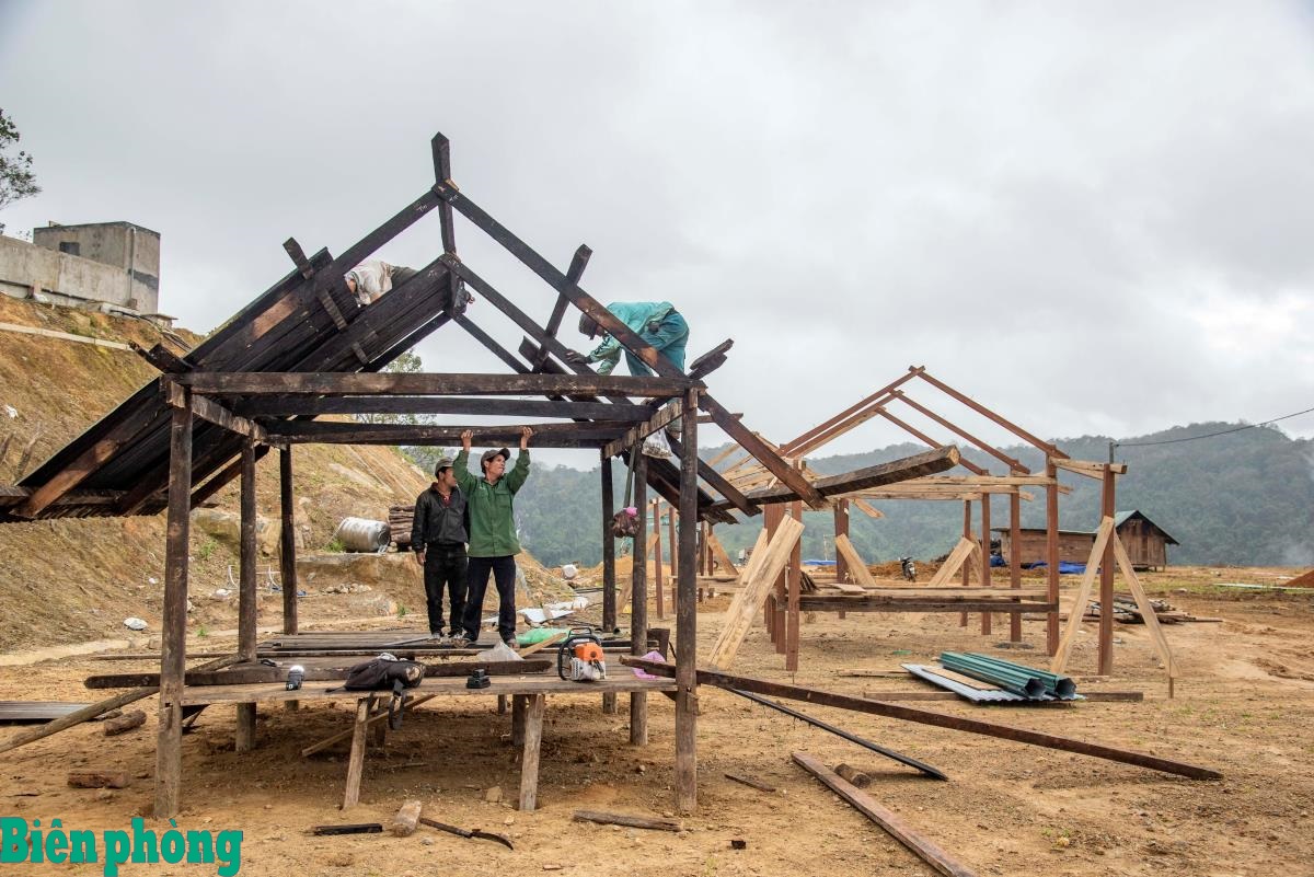 Nhà của bà con được lắp ráp từ ngôi nhà cũ tháo rời nên phải mất 3-4 ngày mới hoàn thành. Ảnh: Lê Văn Chương