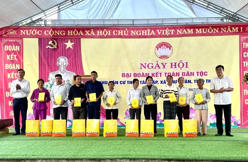 Tại ngày hội, Phó Chủ tịch Ủy ban MTTQ tỉnh, Chủ tịch HND tỉnh đã trao tặng cán bộ, Nhân dân thôn Tân Lập bức ảnh “Bác Hồ với bác Tôn” - biểu tượng cao đẹp của tinh thần đại đoàn kết toàn dân tộc; trao tặng 10 suất quà cho các hộ gia đình chính sách, hộ có hoàn cảnh đặc biệt khó khăn trên địa bàn và trao 80 triệu đồng kinh phí hỗ trợ xây dựng nhà Đại đoàn kết cho hộ gia đình ông Hà Văn Mùi, ở thôn Tân Sơn.