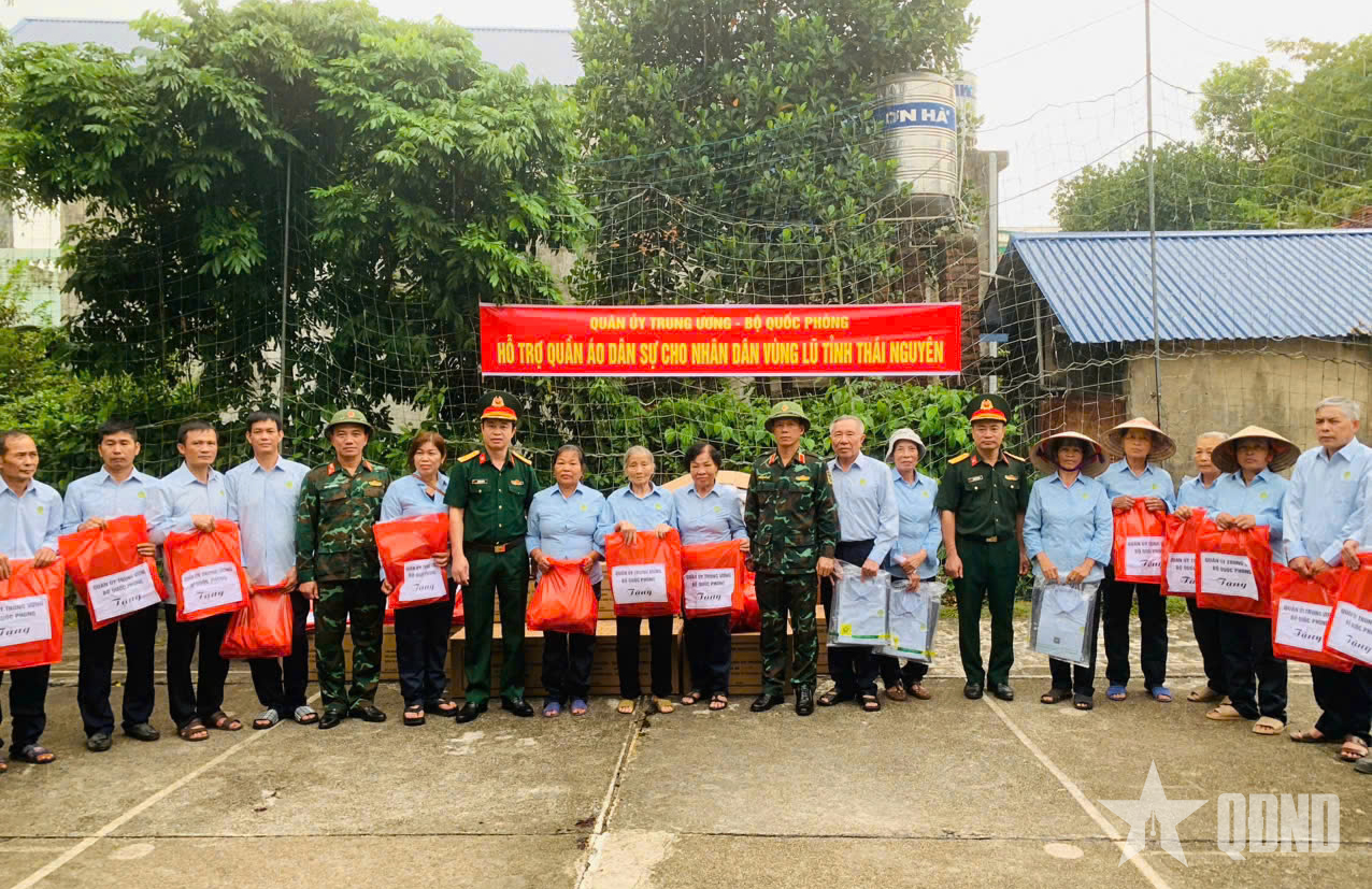 Theo đó, Đại tá Lê Văn Thương, Phó cục trưởng Cục Quân nhu bàn giao, Bộ CHQS tỉnh Thái Nguyên tổ chức tiếp nhận, cấp phát trước mắt 2.000 bộ quần áo dân sự cho các xã, phường bị thiệt hại do bão số 11 trên địa bàn tỉnh. Theo kế hoạch, Tổng cục Hậu cần - Kỹ thuật sẽ bàn giao 8.000 bộ cho tỉnh Thái Nguyên.