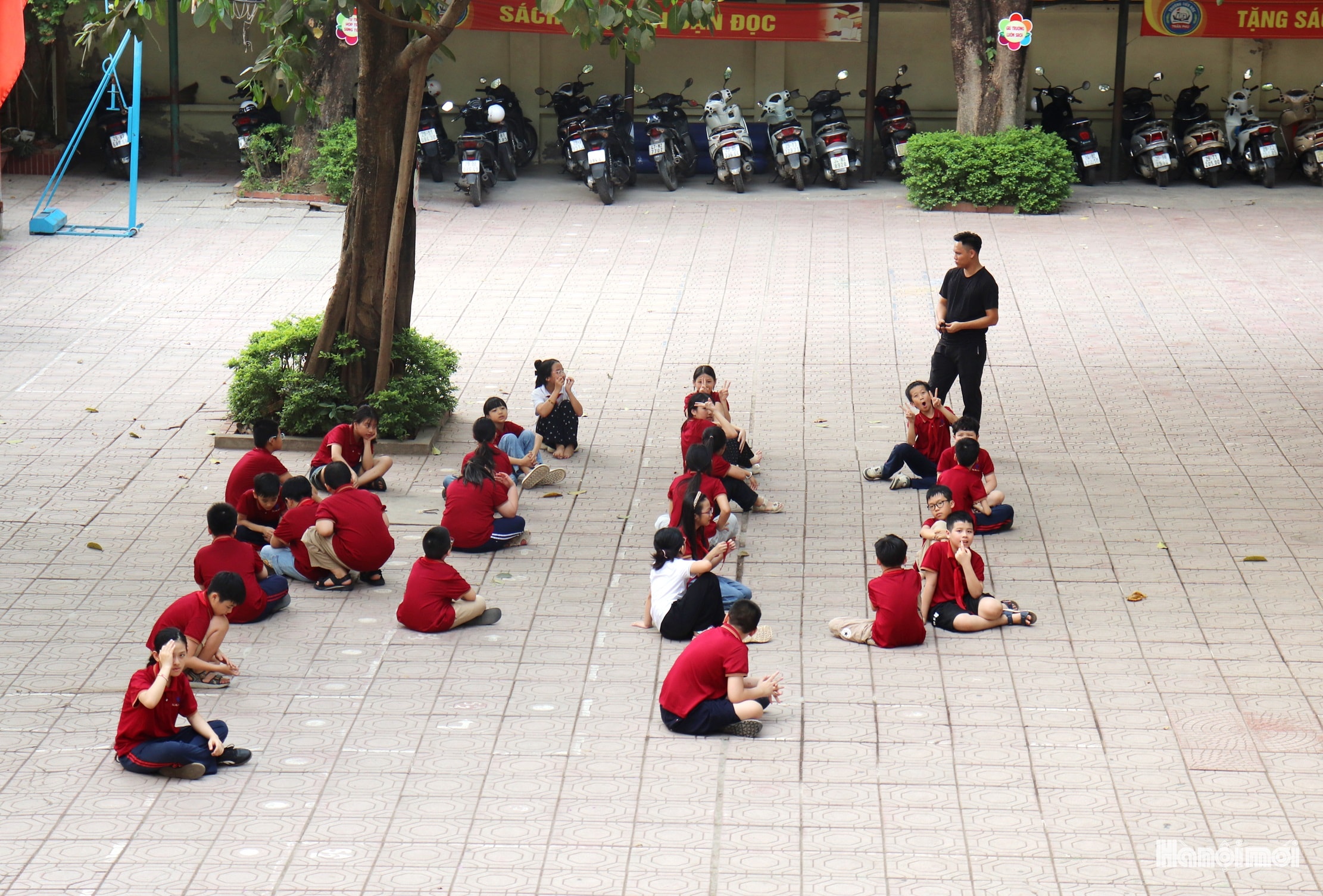 Học sinh tham gia hoạt động học tập ngoài trời tại sân trường tại Trường Tiểu học Trần Phú. Ảnh: Tuấn Điệp