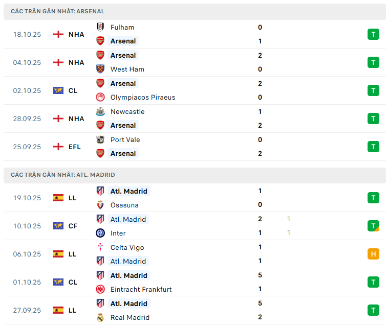 Lịch sử đối đầu Arsenal vs Atletico Madrid