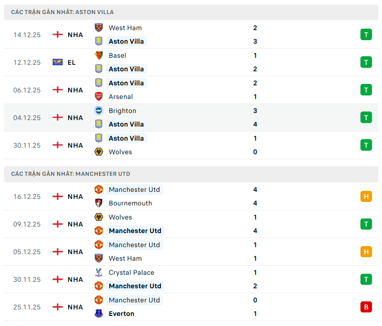 Ở hướng ngược lại, MU đang vật lộn tìm kiếm sự ổn định. Cho dù thi đấu ít hơn Villa 2 đấu trường, nhưng Quỷ đỏ không thể tạo ra các chuỗi thắng dài. Kể từ sau khi thắng 4/5 trận ở tháng 10, MU chỉ thắng thêm 2 trong 7 trận gần nhất (hòa 4, thua 1). Vòng trước, MU để Bouremouth cầm hòa 4-4 trên sân nhà sau 3 lần vượt lên dẫn trước. Xa hơn, họ từng thua Everton 0-1 cho dù được chơi hơn người từ phút 13.