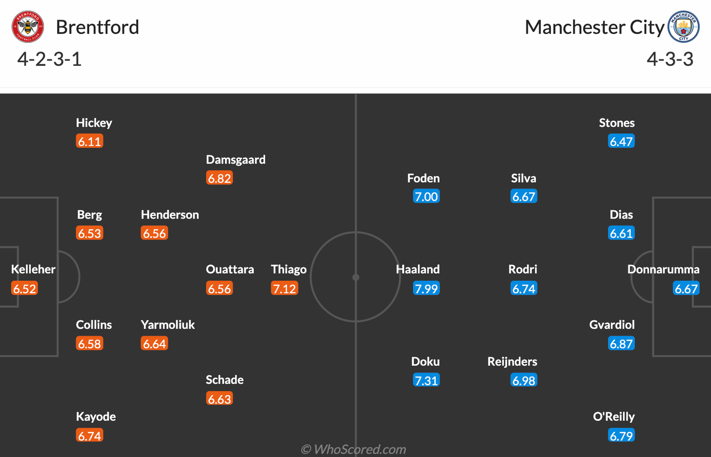 Dự đoán tỷ số: Brentford 0-1 Man City.